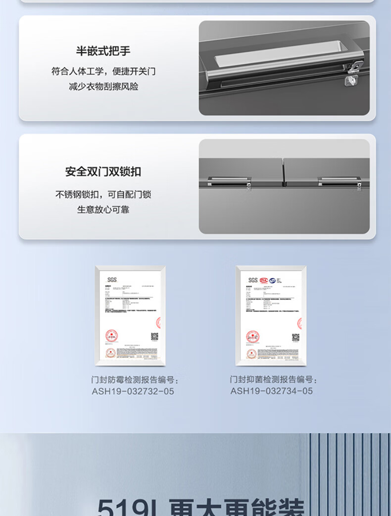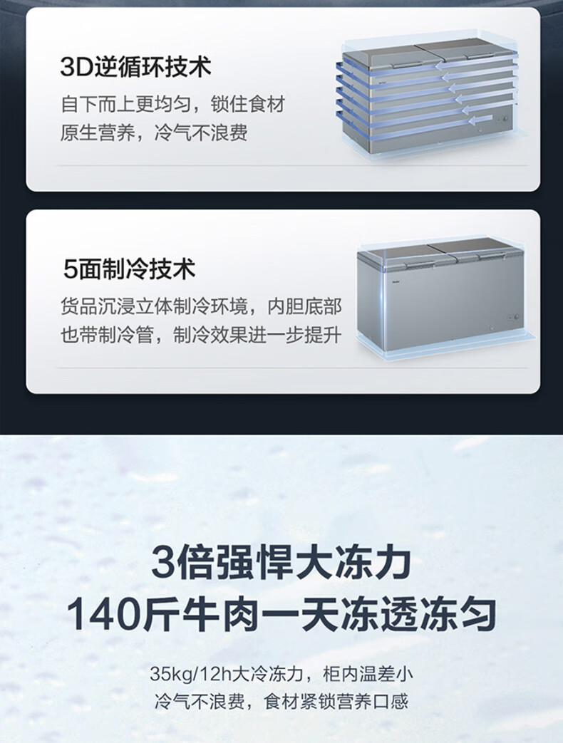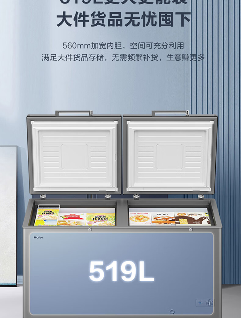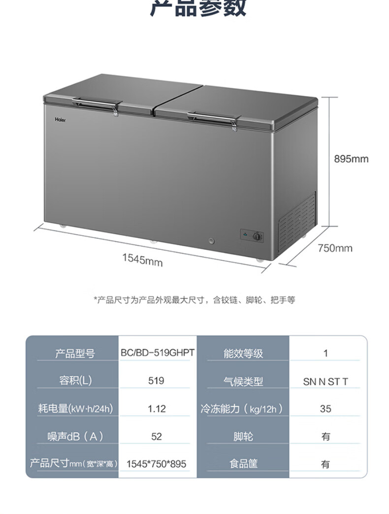 • 商品名称:海尔(Haier)冰柜大容量519升零下-38度超低温无需频繁除霜一级节能海鲜冷冻柜冷藏柜BC/BD-519GHPT BC/BD-519GHPT/台