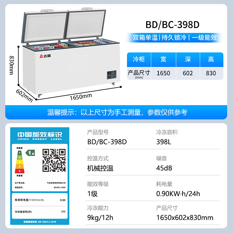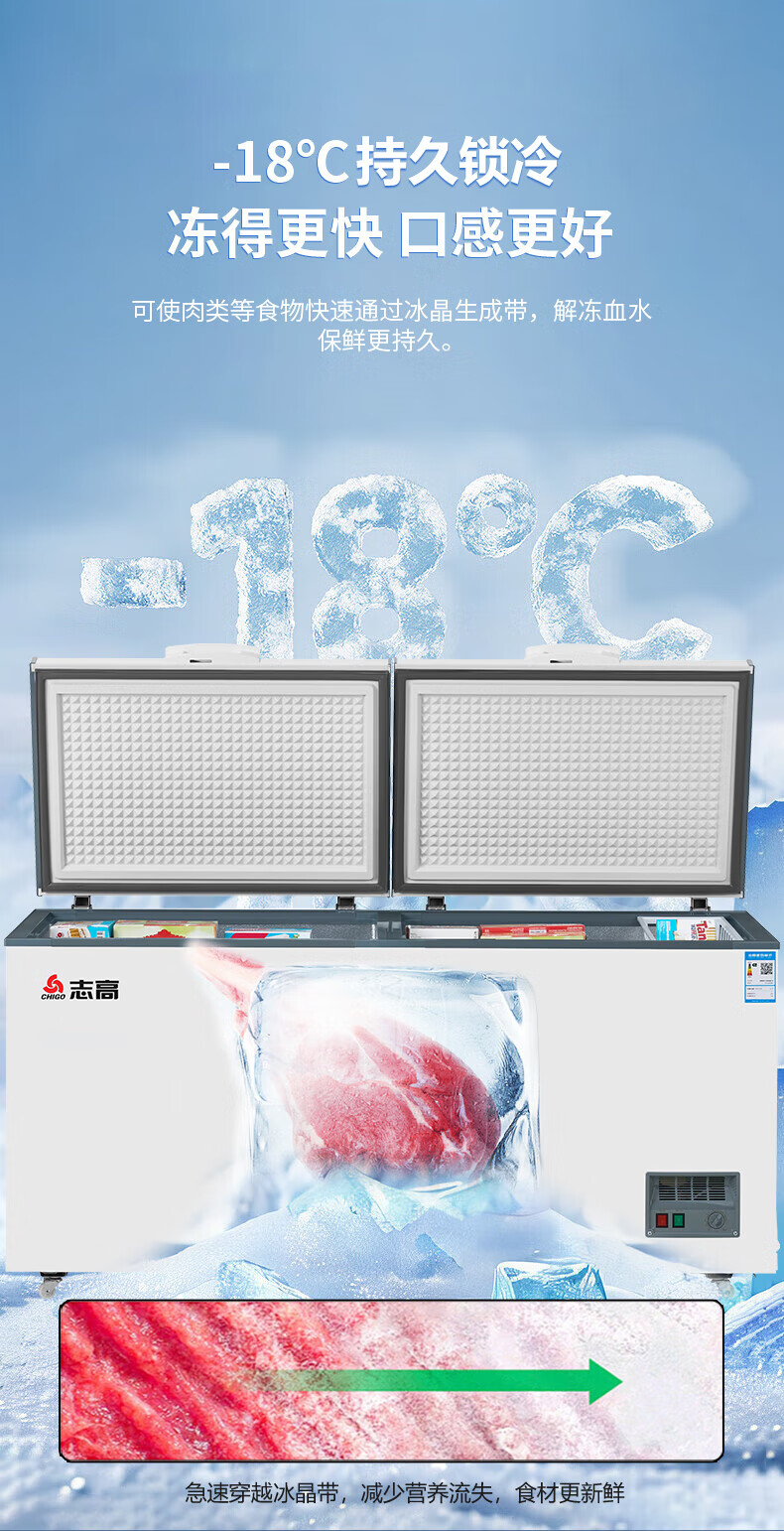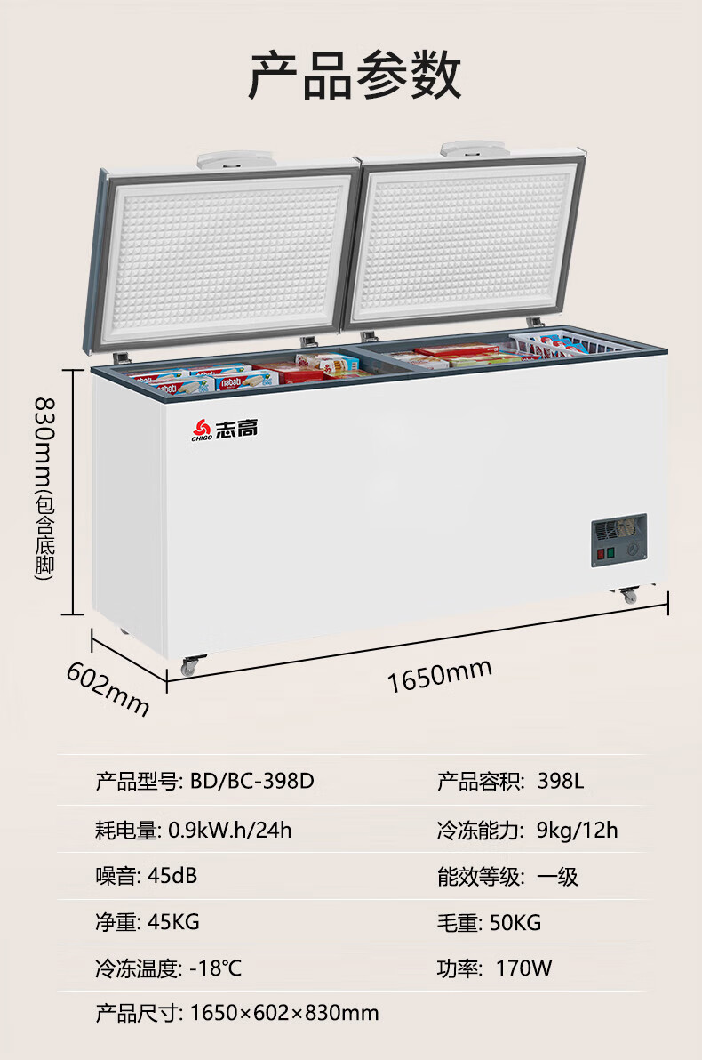 • 商品名称:志高(CHIGO)单温冷柜 398升家用商用大容量冰柜 卧式全冷冻保鲜冰箱一级能效大冰柜 BD/BC-398D BD/BC-398D/台