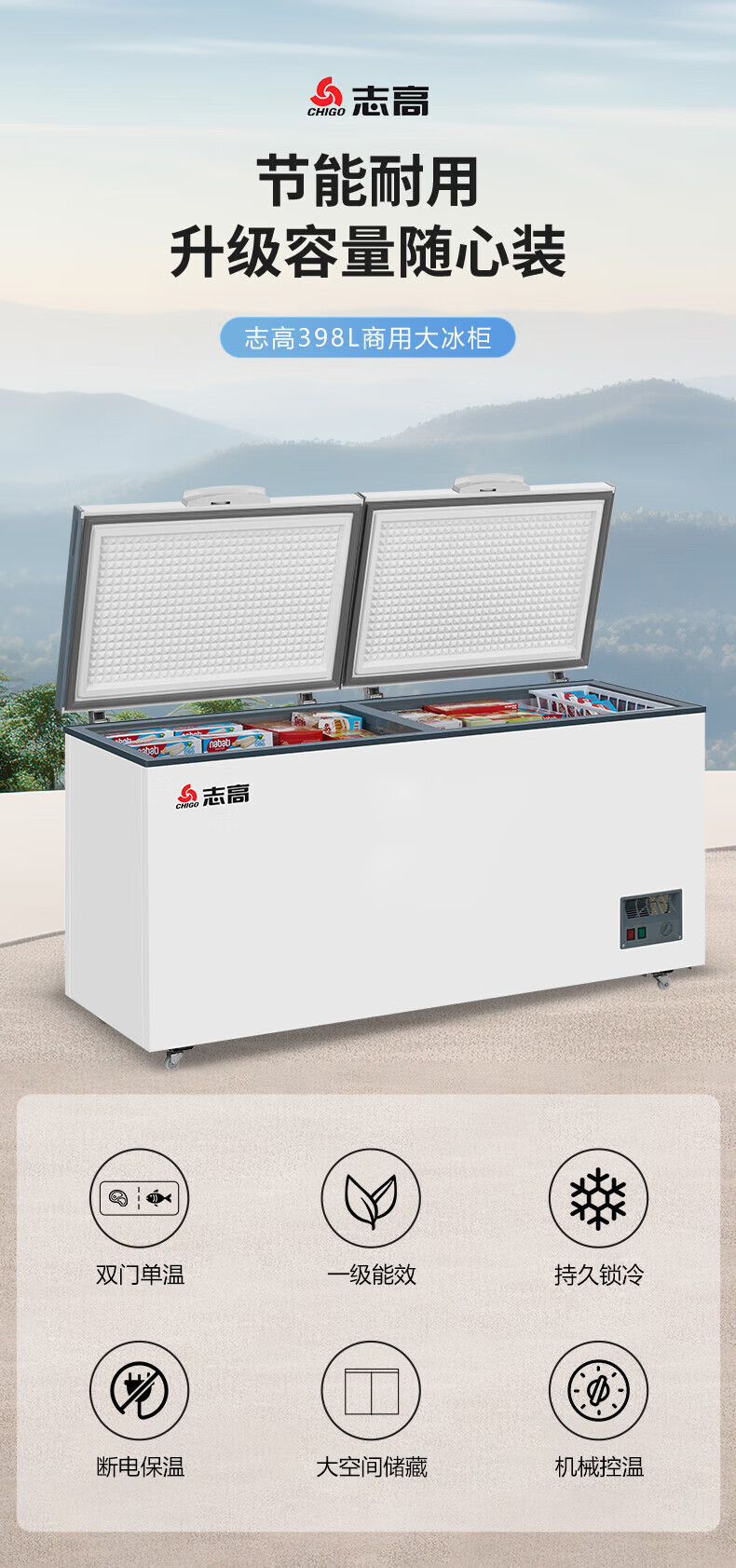 志高(CHIGO)单温冷柜 398升家用商用大容量冰柜 卧式全冷冻保鲜冰箱一级能效大冰柜 BD/BC-398D BD/BC-398D/台