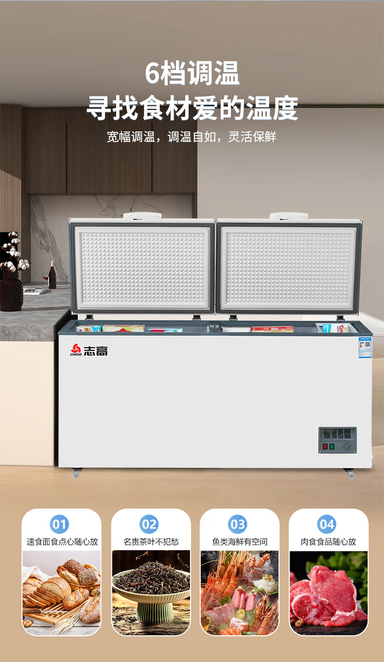家用电器  > 大家电  > 冷柜  >  志高/CHIGO  >  志高(CHIGO)单温冷柜 398升家用商用大容量冰柜 卧式全冷冻保鲜冰箱一级能效大冰柜 BD/BC-398D BD/BC-398D/台