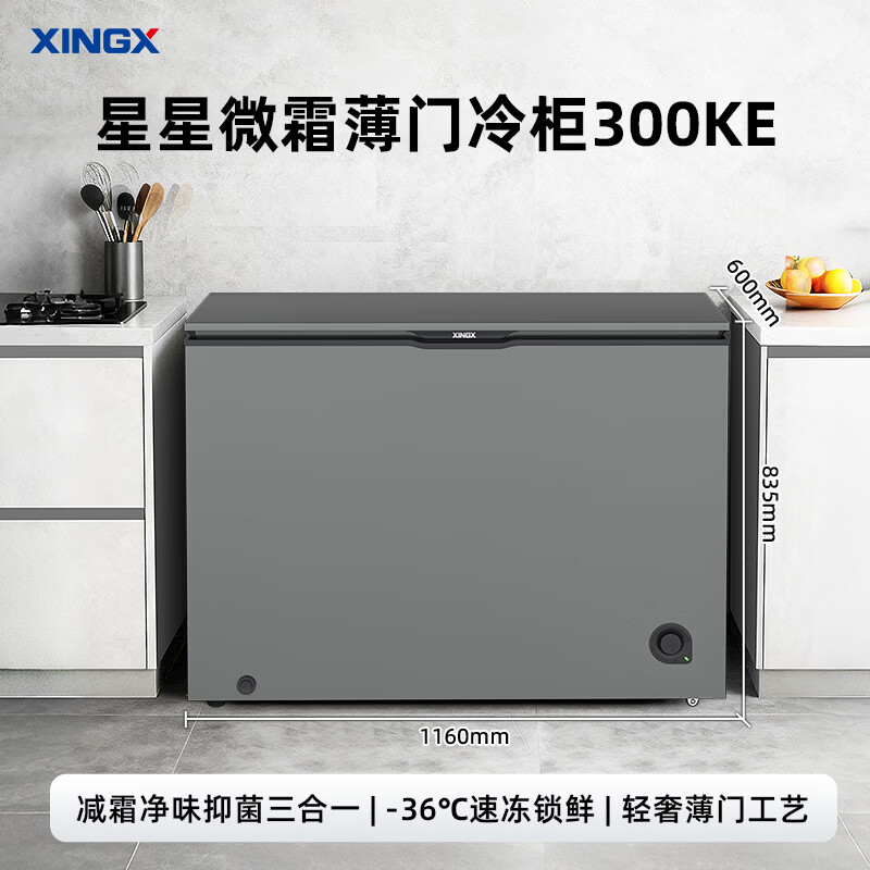 星星(XINGX)300L单温家用小型冰柜 大容量减霜保鲜净味节能一级能效冰箱冷藏冷冻两用冷柜BD/BC-300KE BD/BC-300KE/台