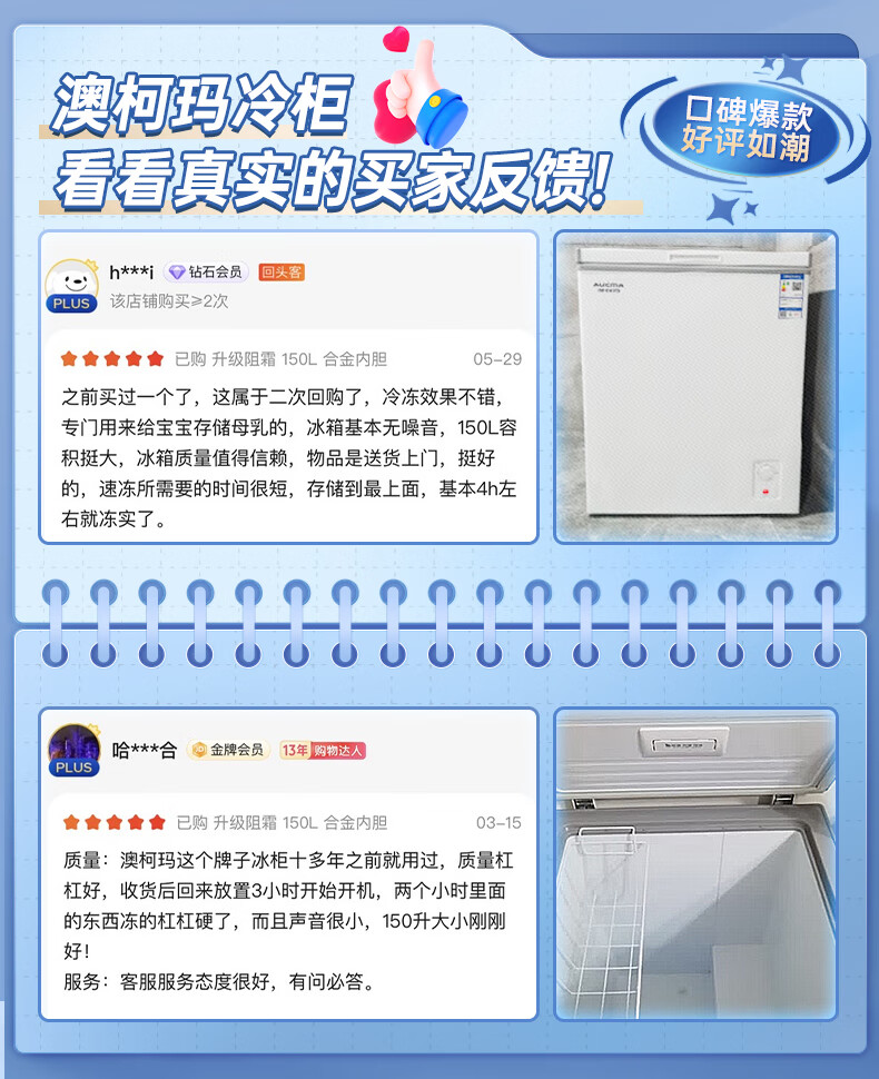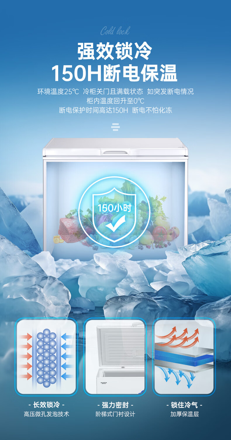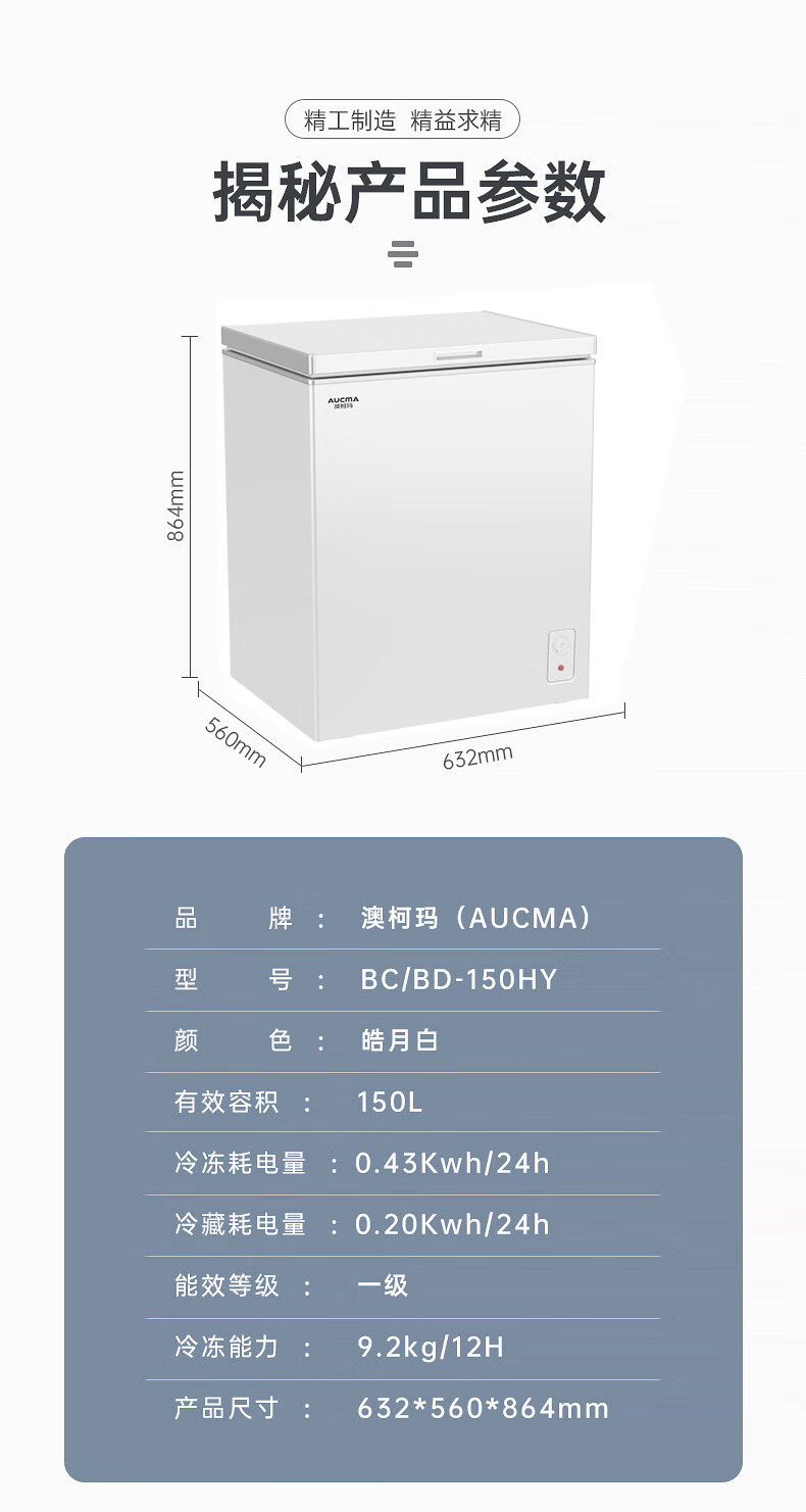 • 商品名称:澳柯玛(AUCMA)150升单温冷柜家用减霜小冰柜冷藏柜冷冻柜小型冷柜卧式顶开门冰箱一级能效 BC/BD-150HY BC/BD-150HY/台