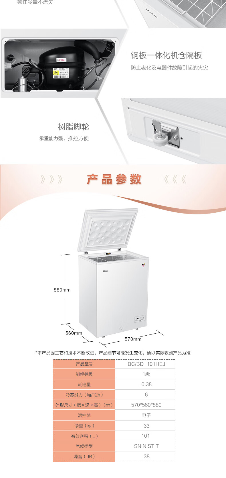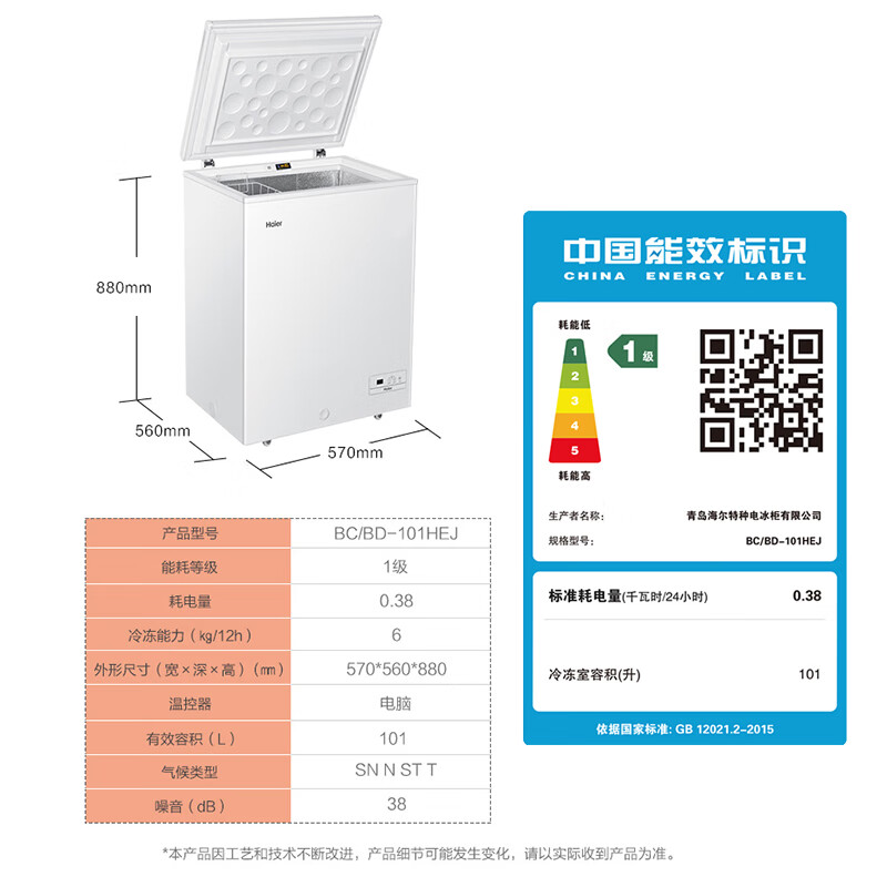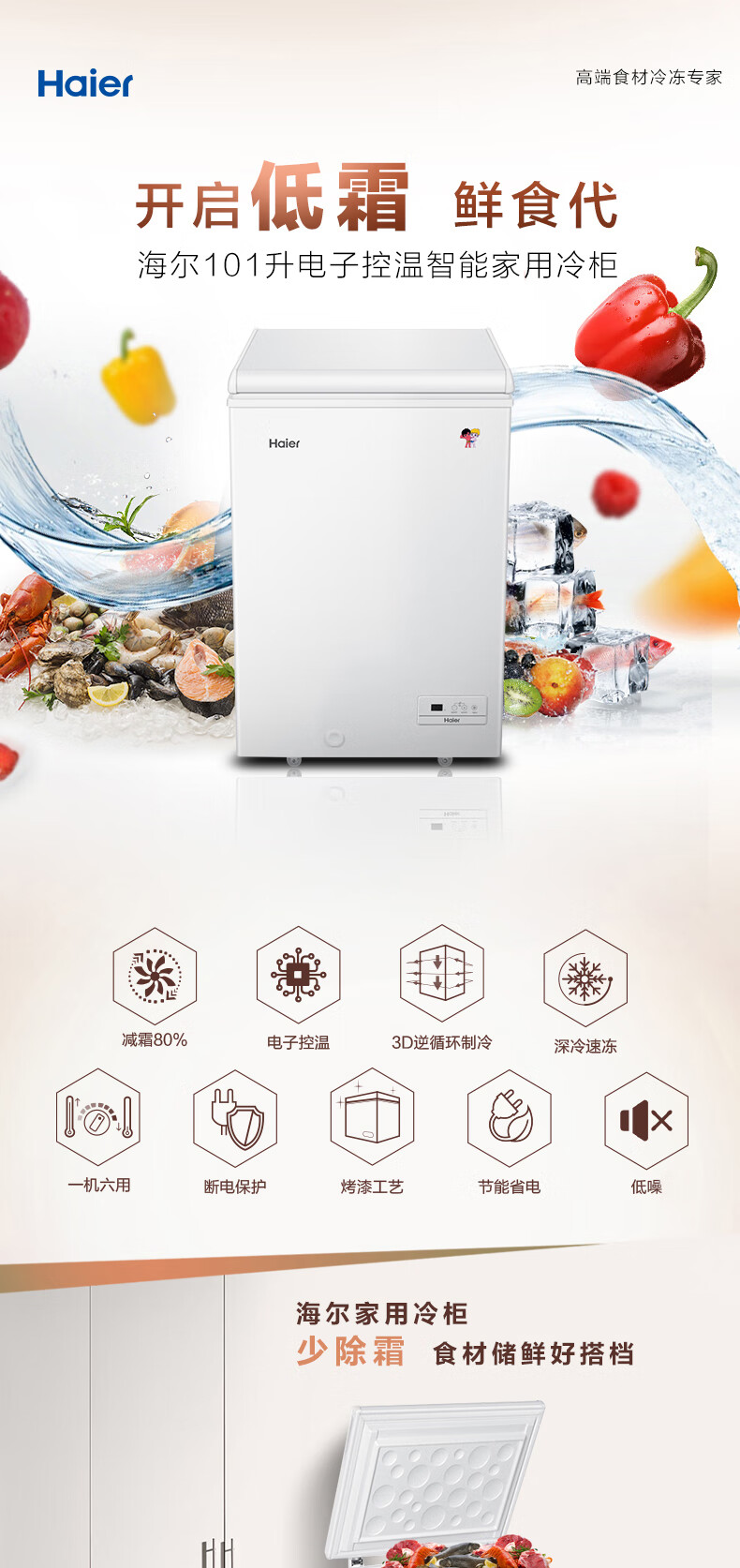 家用电器  > 大家电  > 冷柜  >  海尔/Haier  >  海尔(Haier)101升电脑控温冷冻柜低霜家用冰柜 冷藏冷冻转换冰箱小冷柜BC/BD-101HEJ BC/BD-101HEJ/台