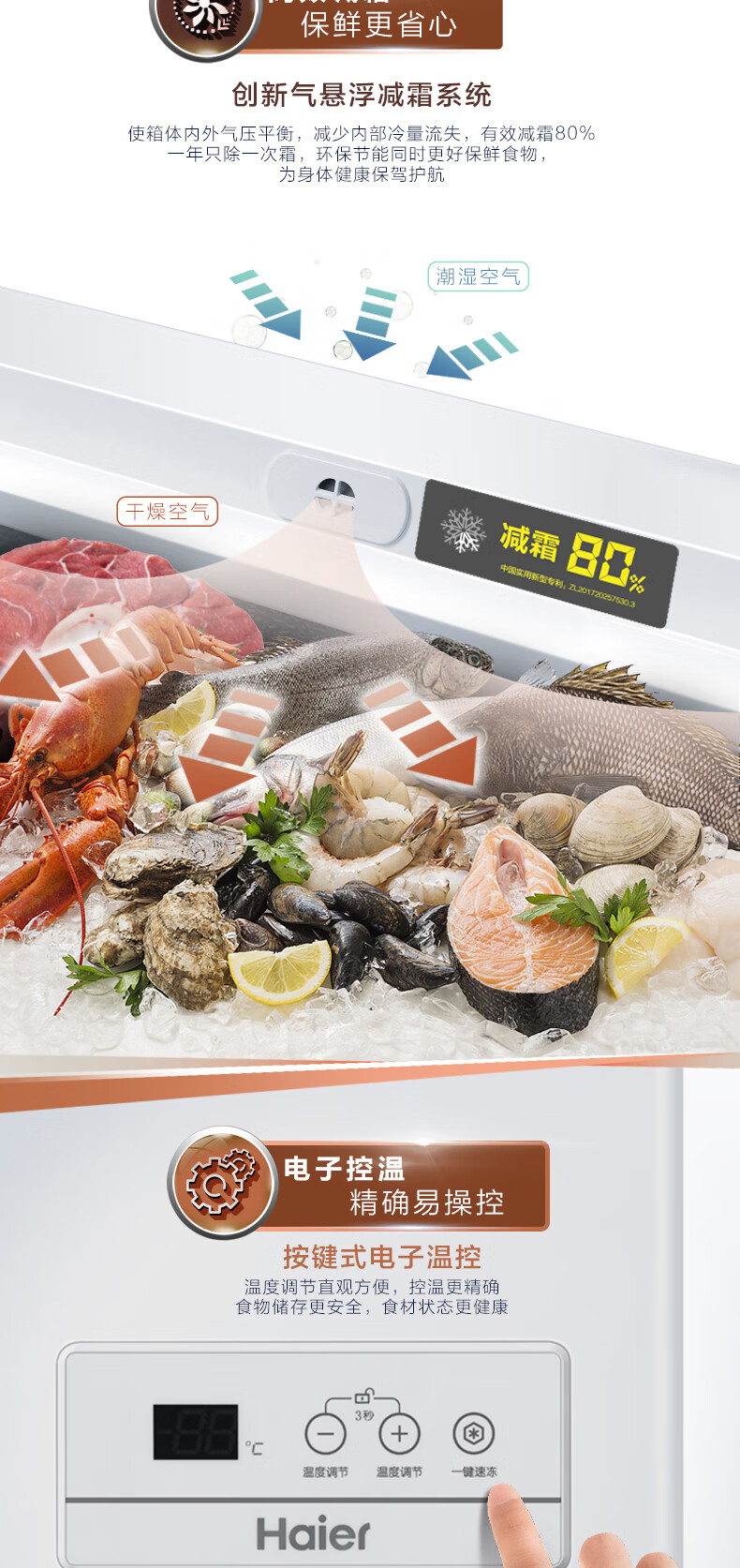 海尔(Haier)101升电脑控温冷冻柜低霜家用冰柜 冷藏冷冻转换冰箱小冷柜BC/BD-101HEJ BC/BD-101HEJ/台