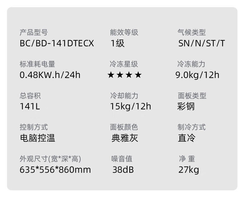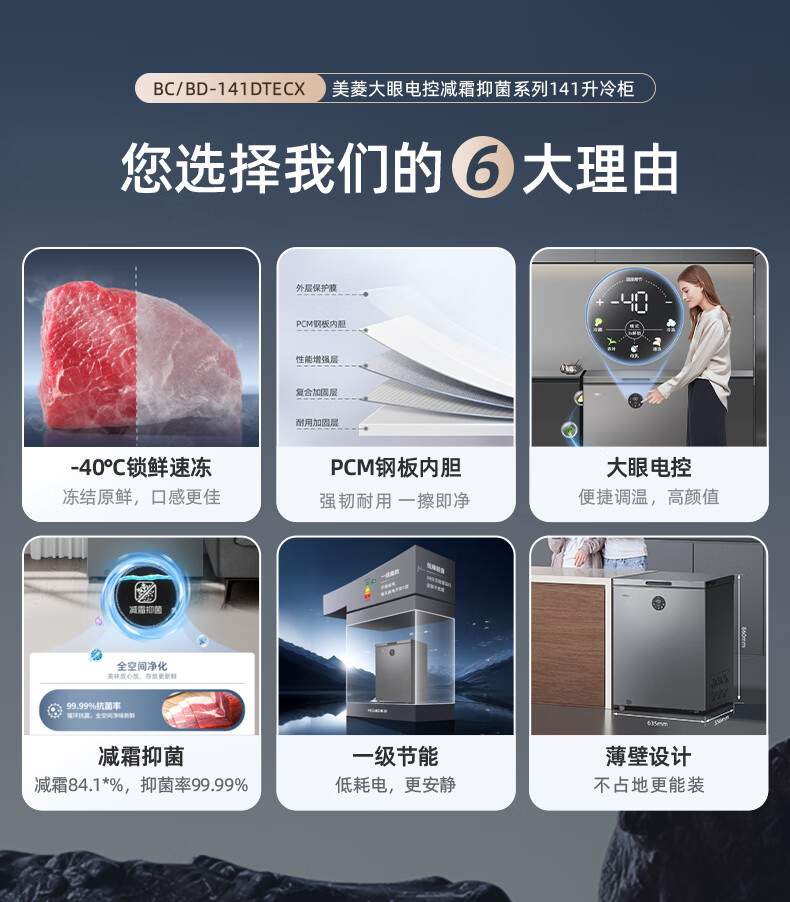 • 商品名称:美菱(MeiLing)大眼电控141L单温家用冰柜减霜直冷一级能效-40°速冻电子控温彩钢面板BC/BD-141DTECX BC/BD-141DTECX/台