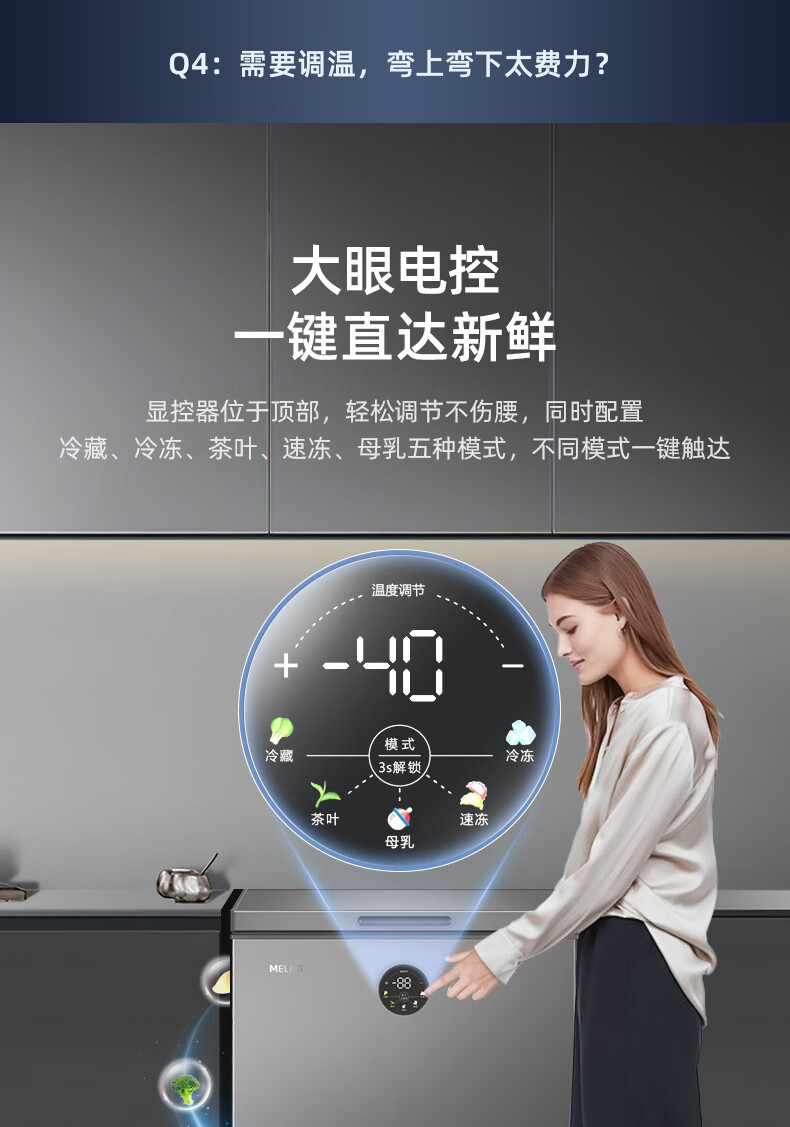 美菱(MeiLing)大眼电控141L单温家用冰柜减霜直冷一级能效-40°速冻电子控温彩钢面板BC/BD-141DTECX BC/BD-141DTECX/台