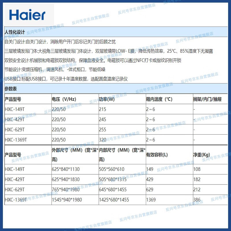 • 商品名称:海尔 Haier HXC-629T 血液冷藏箱 冰箱 适用于血液保存 海尔 Haier HXC-629T 医用血液冷藏箱 医用冰箱 适用于血液保存/台