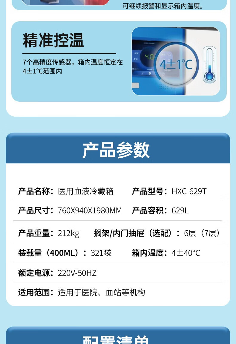 包装清单: 1.海尔 Haier HXC-629T 医用血液冷藏箱 1台