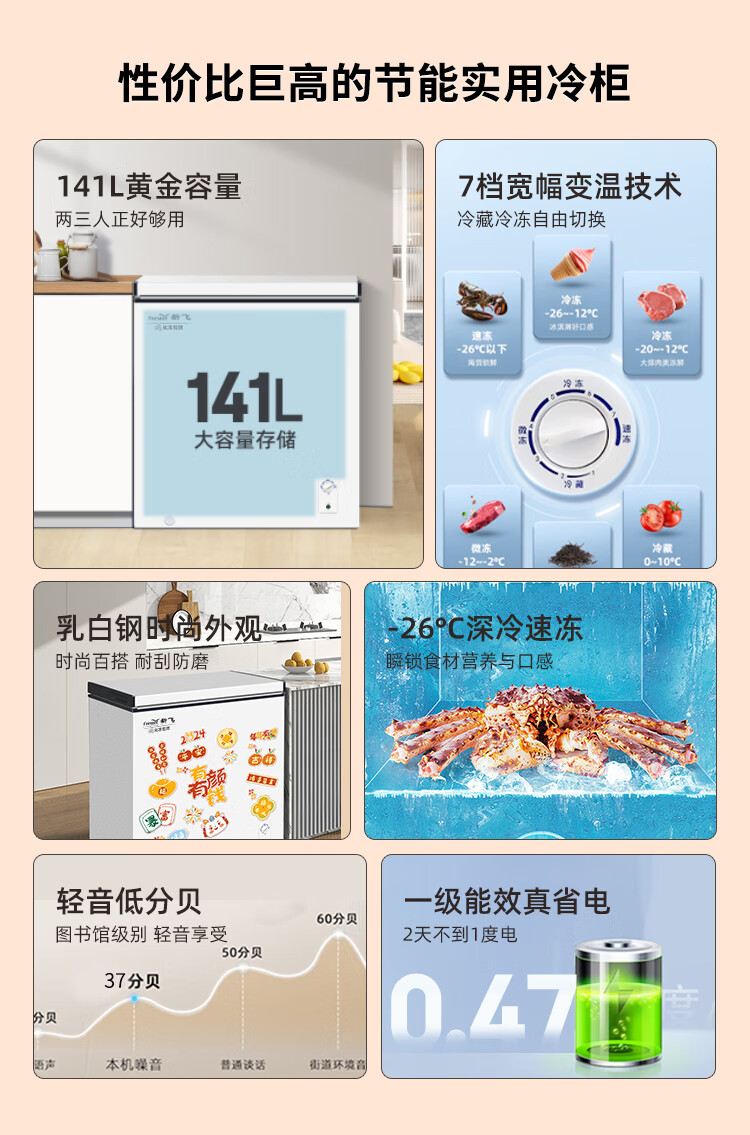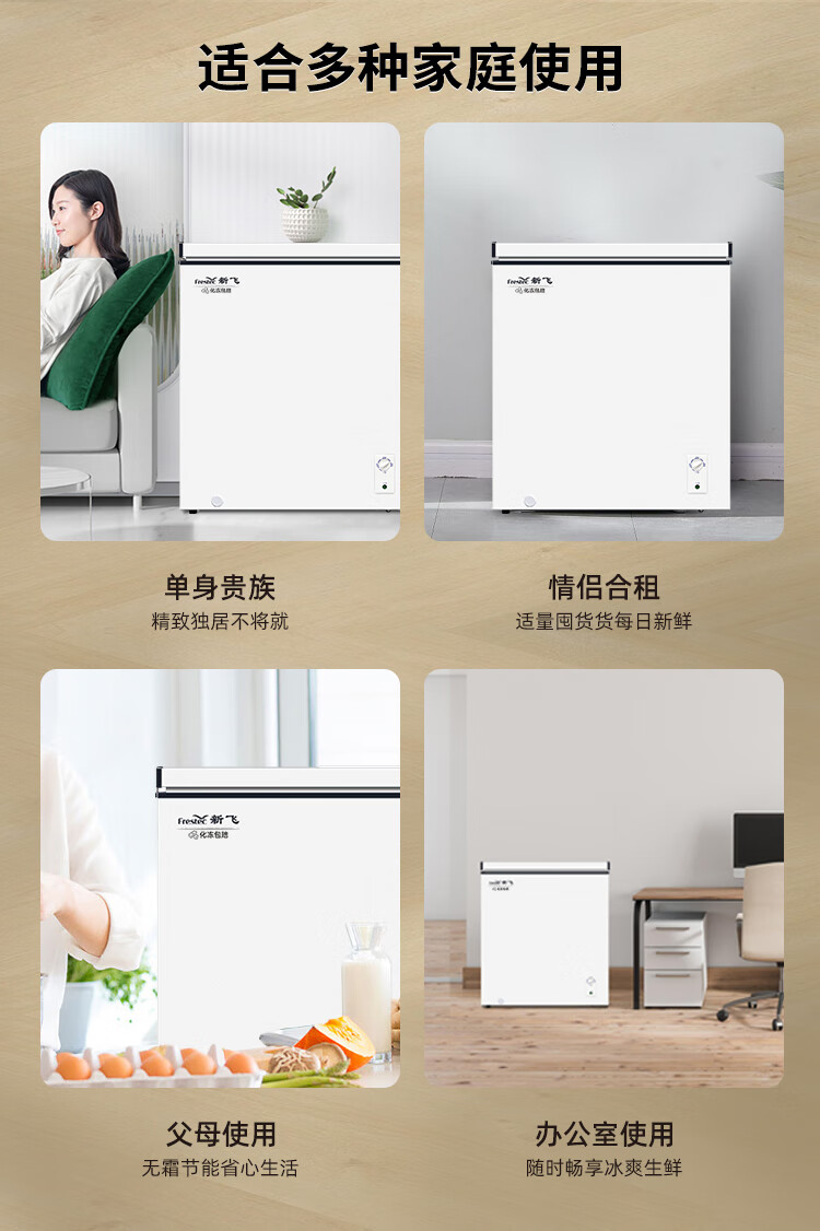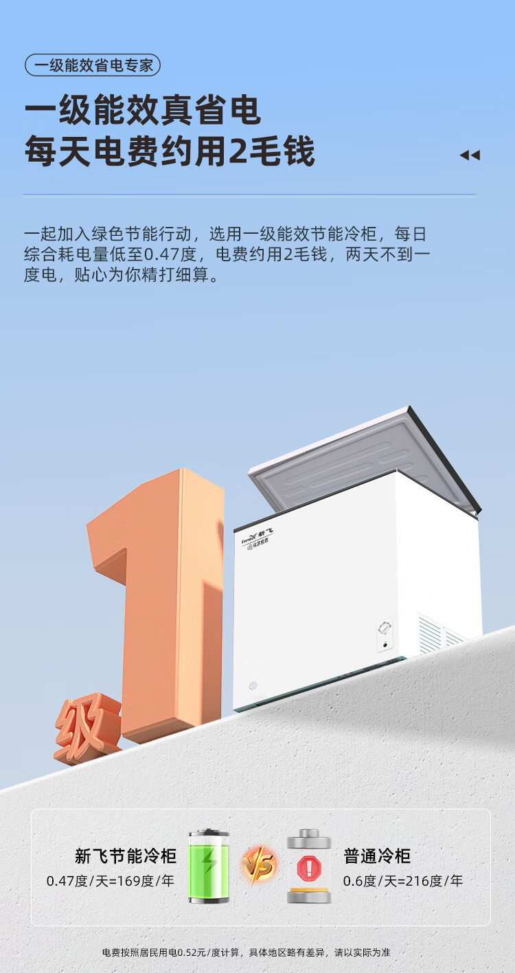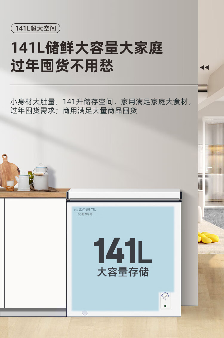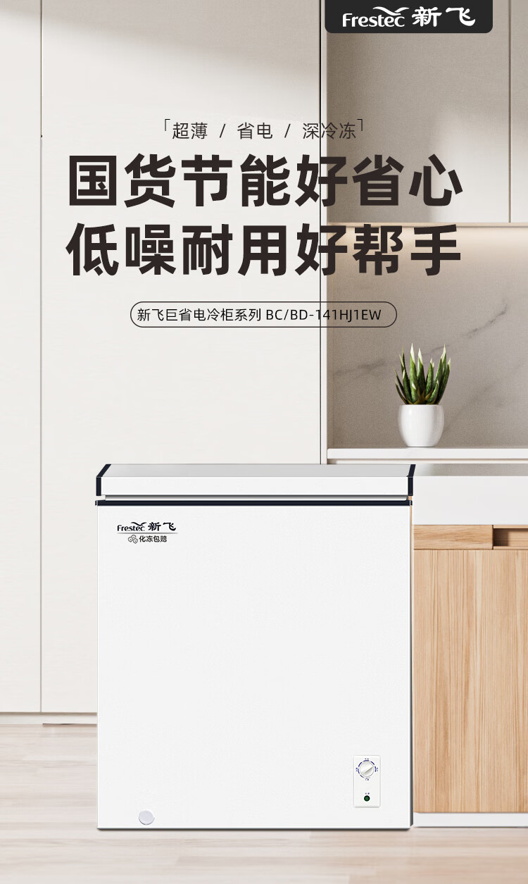 家用电器  > 大家电  > 冷柜  >  新飞 /Frestec  >  新飞141L单温家用冰箱冷柜冰柜一级节能省电宽幅变温BC/BD-141HJ1EW BC/BD-141HJ1EW/台