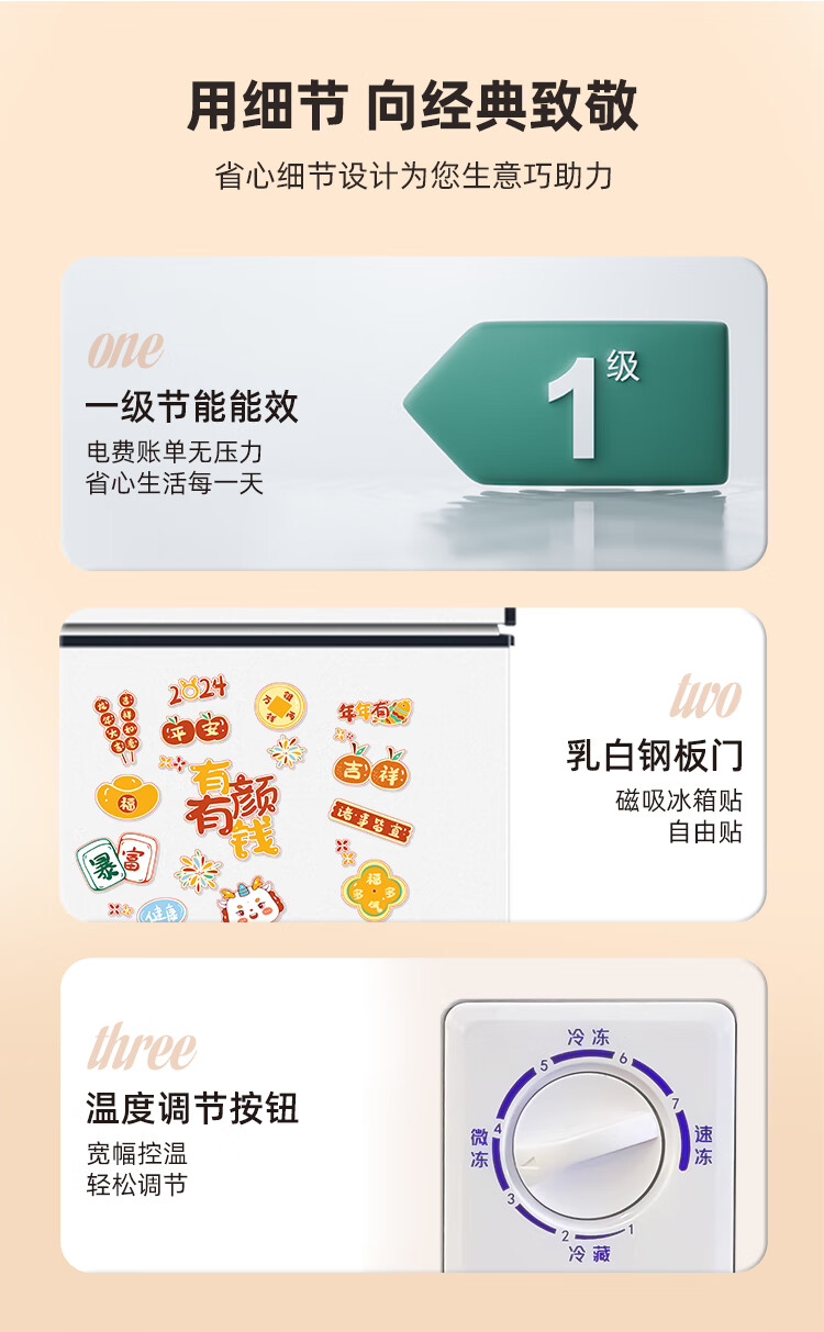 新飞141L单温家用冰箱冷柜冰柜一级节能省电宽幅变温BC/BD-141HJ1EW BC/BD-141HJ1EW/台