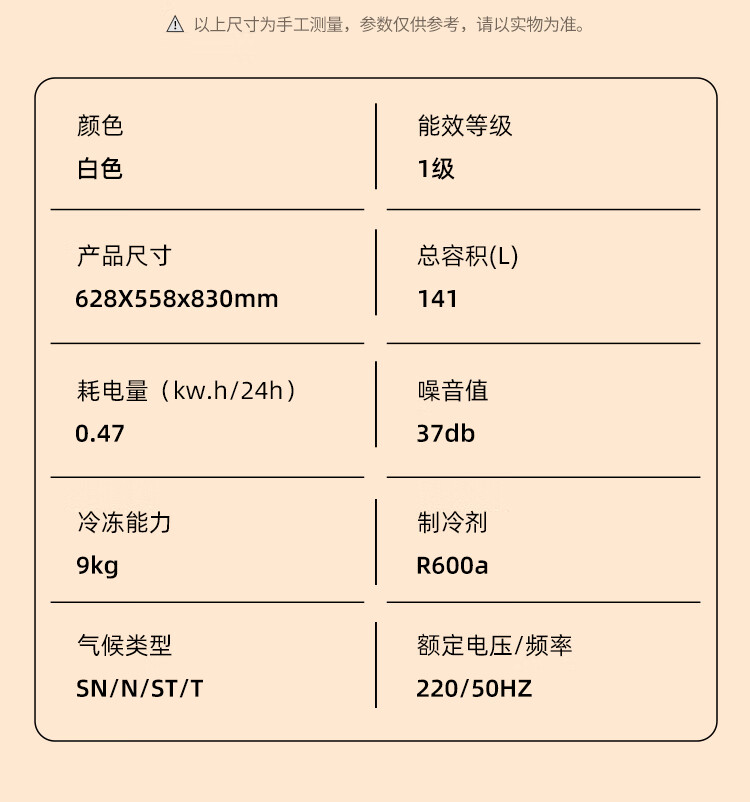 • 商品名称:新飞141L单温家用冰箱冷柜冰柜一级节能省电宽幅变温BC/BD-141HJ1EW BC/BD-141HJ1EW/台