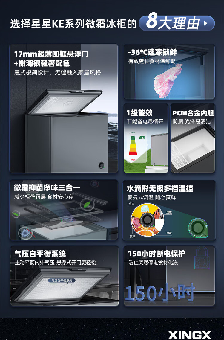 • 商品名称:星星(XINGX)200L单温家用小型冰柜 大容量减霜保鲜净味节能一级能效冰箱冷藏冷冻两用冷柜BD/BC-200KE BD/BC-200KE/台
