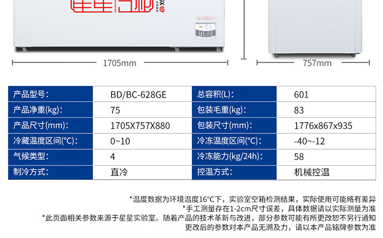 家用电器  > 大家电  > 冷柜  >  星星/XINGX  >  星星(XINGX)601L商用冰柜 大容量冰箱冷藏冷冻转换柜 单温大容积卧式减霜保鲜节能冷柜 BD/BC-628GE BD/BC-628GE/台