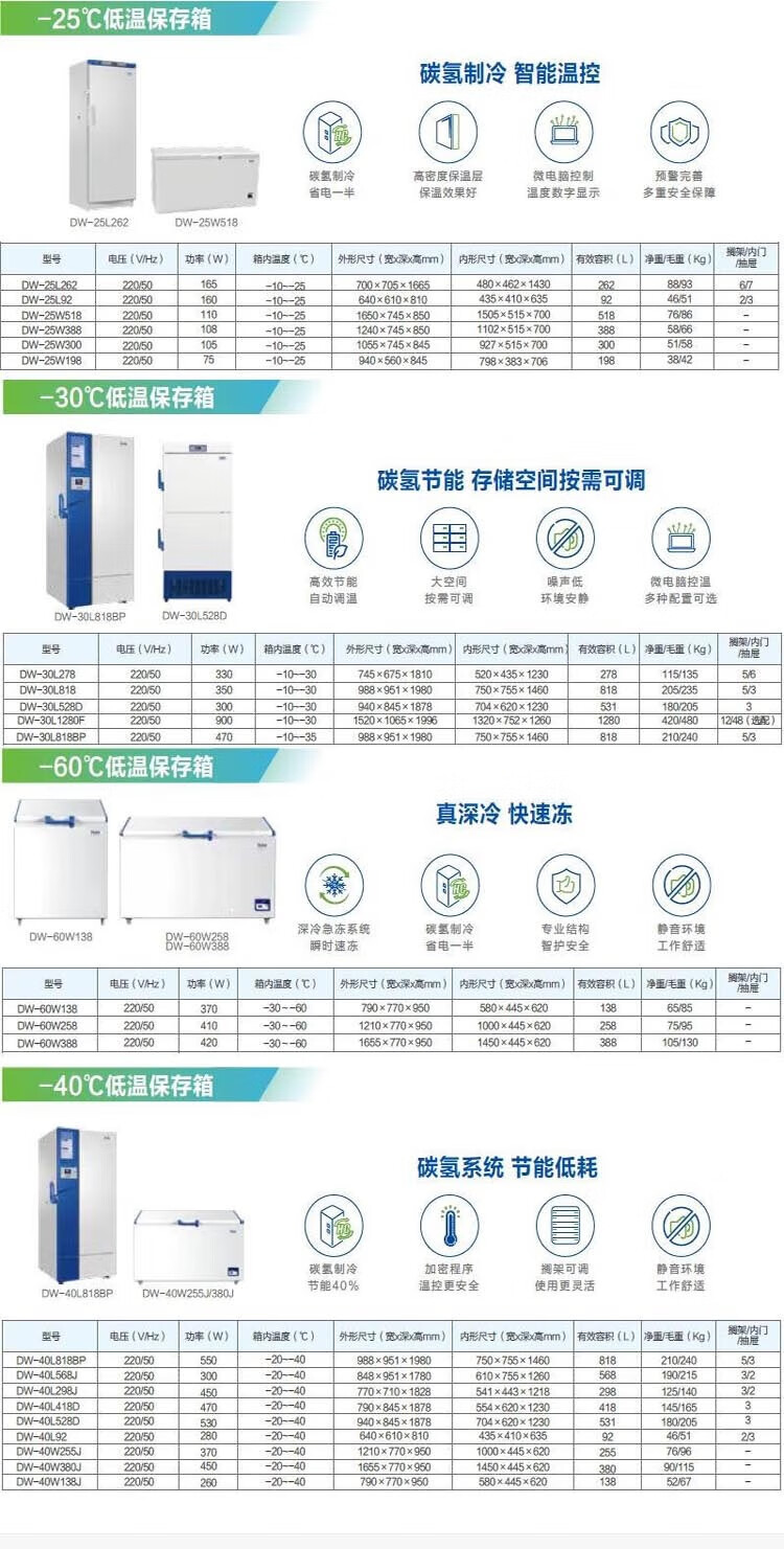 • 商品名称:海尔haier生物实验室低温保存箱零下25 30 40 60度负 -30度冷冻冰箱 DW-30L818BP(-35度) DW-40L818BP/台