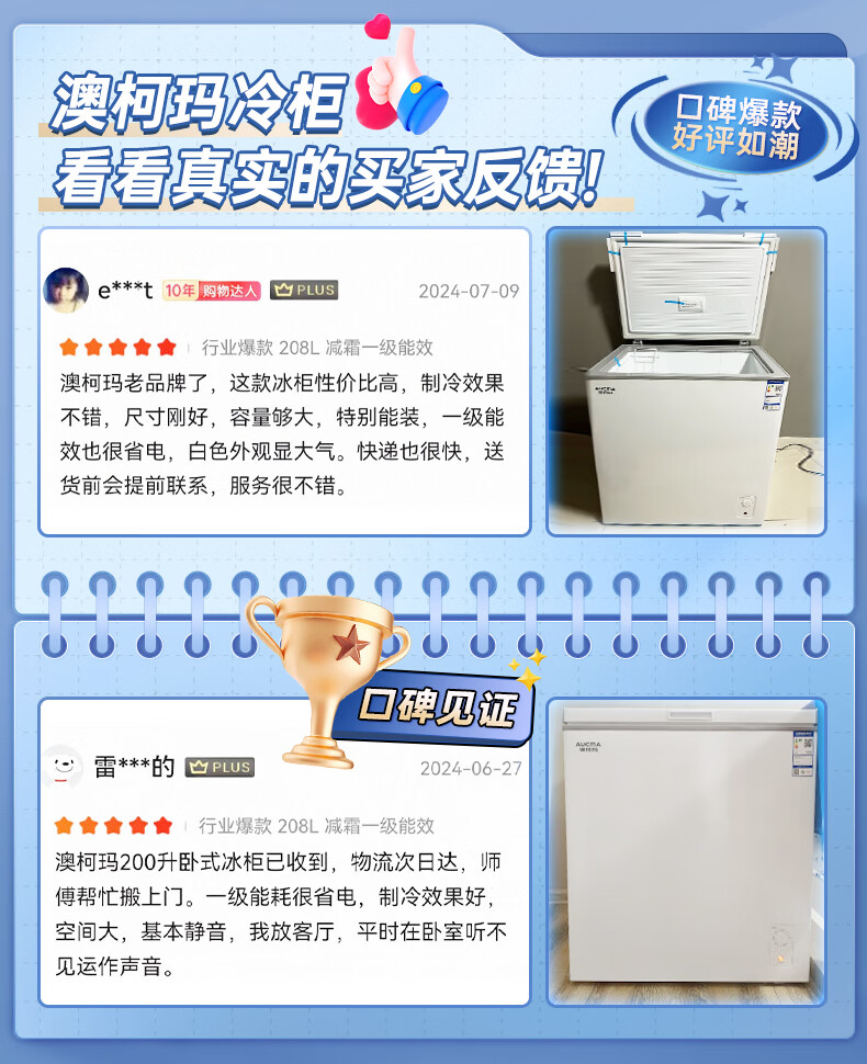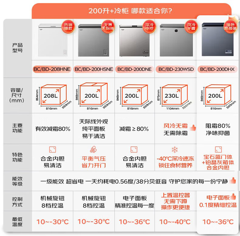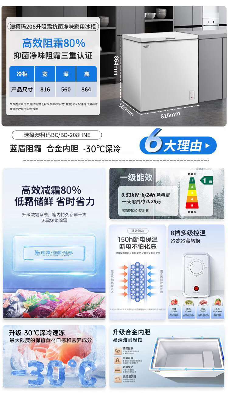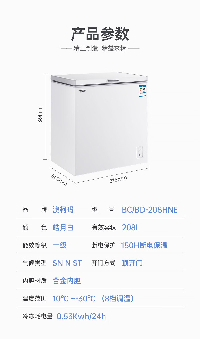 • 商品名称:澳柯玛(AUCMA)208升单温冷柜家用减霜冰柜冷藏柜冷冻柜小型冷柜卧式顶开门冰箱一级能效 BC/BD-208HNE BC/BD-208HNE/台