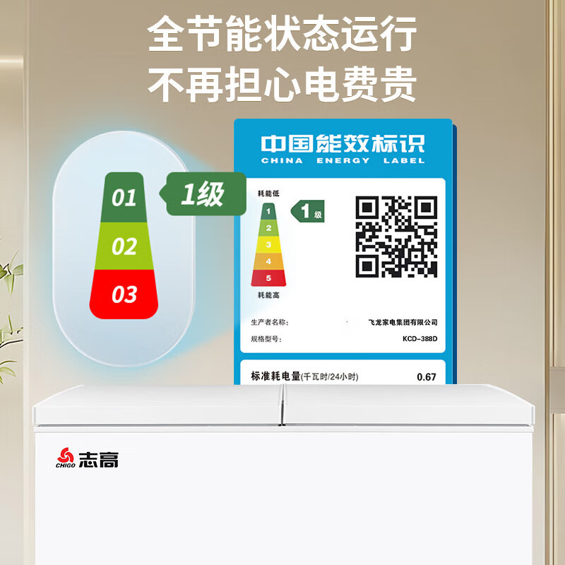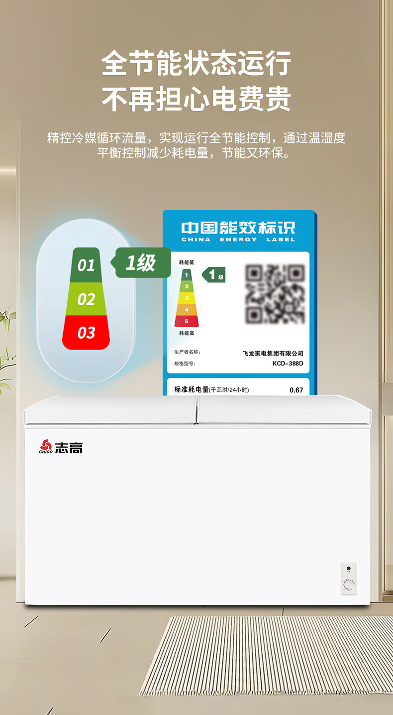 家用电器  > 大家电  > 冷柜  >  志高/CHIGO  >  志高(CHIGO)双温冷柜 388升大容量家商两用囤货卧式冰柜 一级能效冷藏冷冻两用雪糕柜 KCD-388D KCD-388D/台