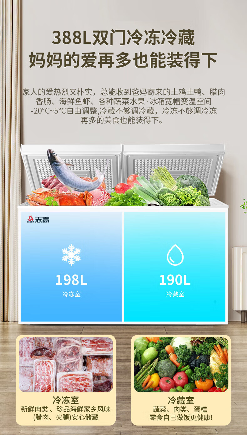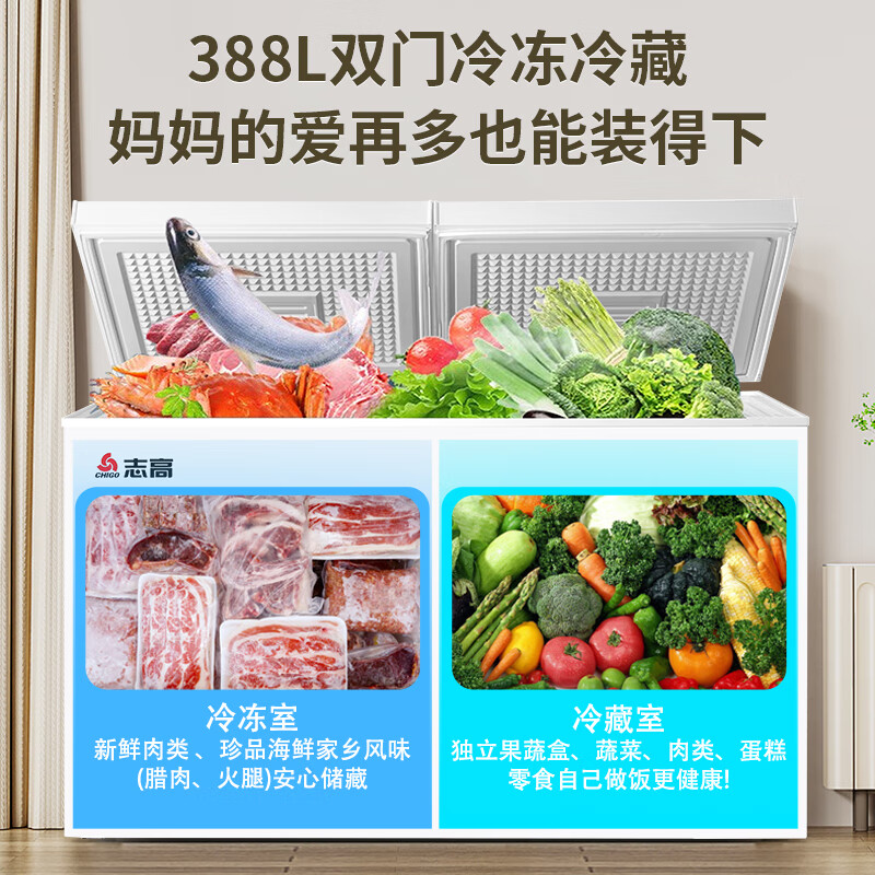 商品名称: 志高(CHIGO)双温冷柜 388升大容量家商两用囤货卧式冰柜 一级能效冷藏冷冻两用雪糕柜 KCD-388D KCD-388D/台