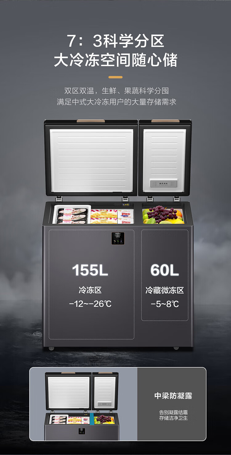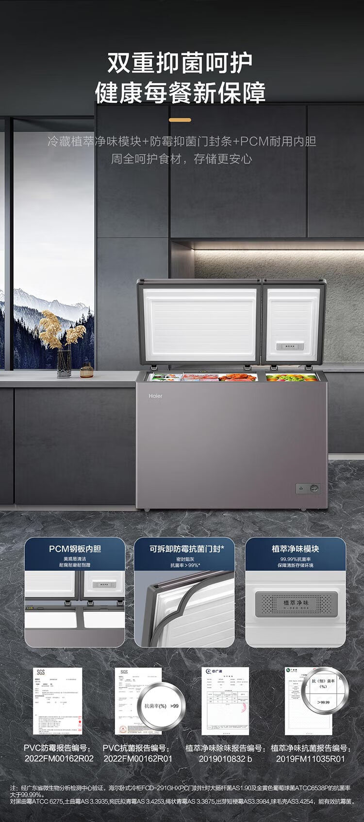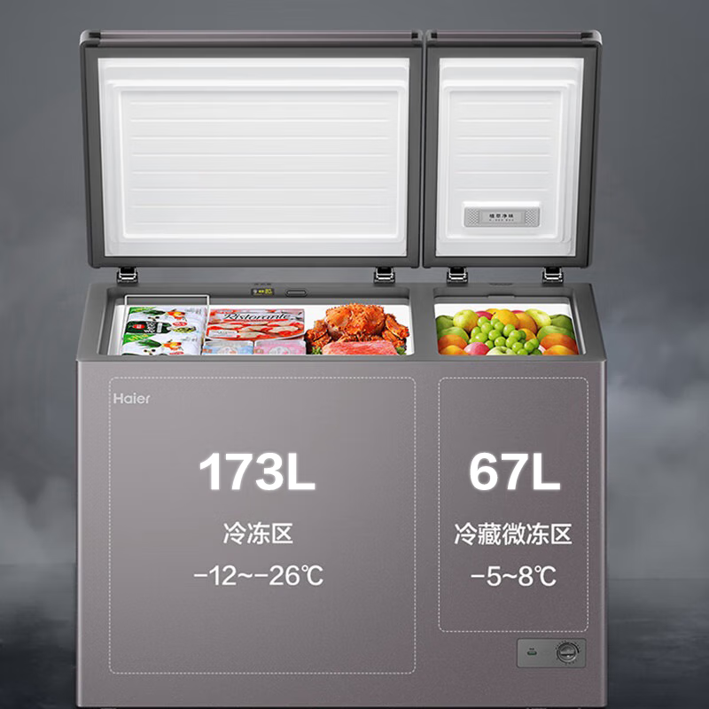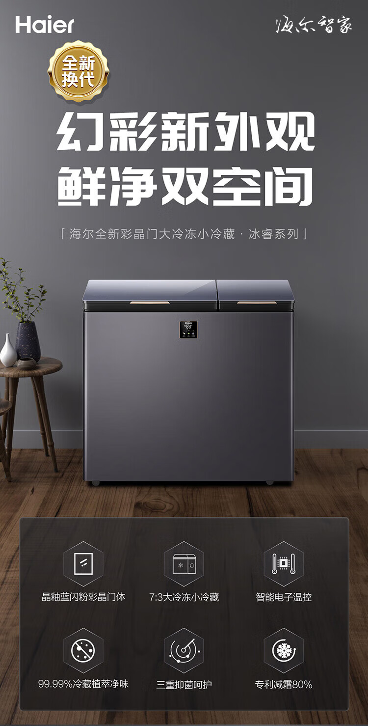 • 商品名称:海尔(Haier)冰柜冷藏冷冻双温保鲜冰箱一级能效节能省电冷柜 双温双室240L-电脑触控-自动除霜 FCD-240GHXPC FCD-240GHXPC/台