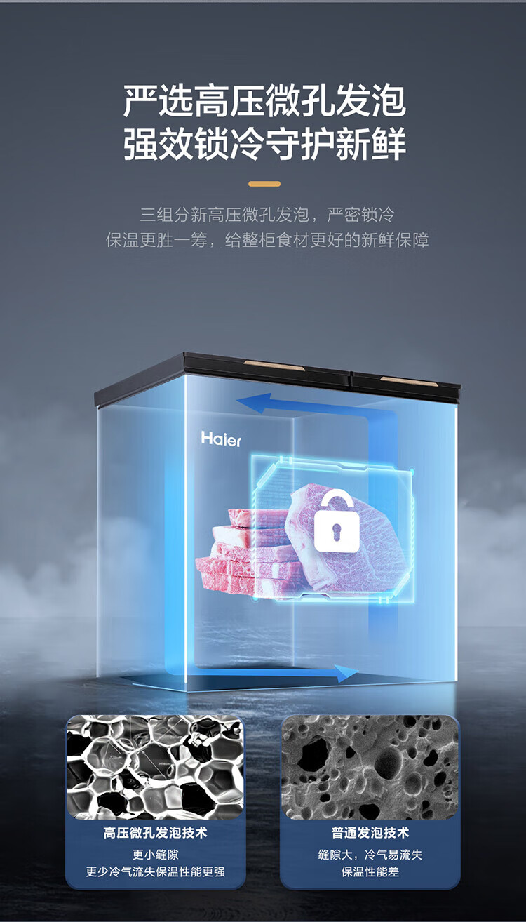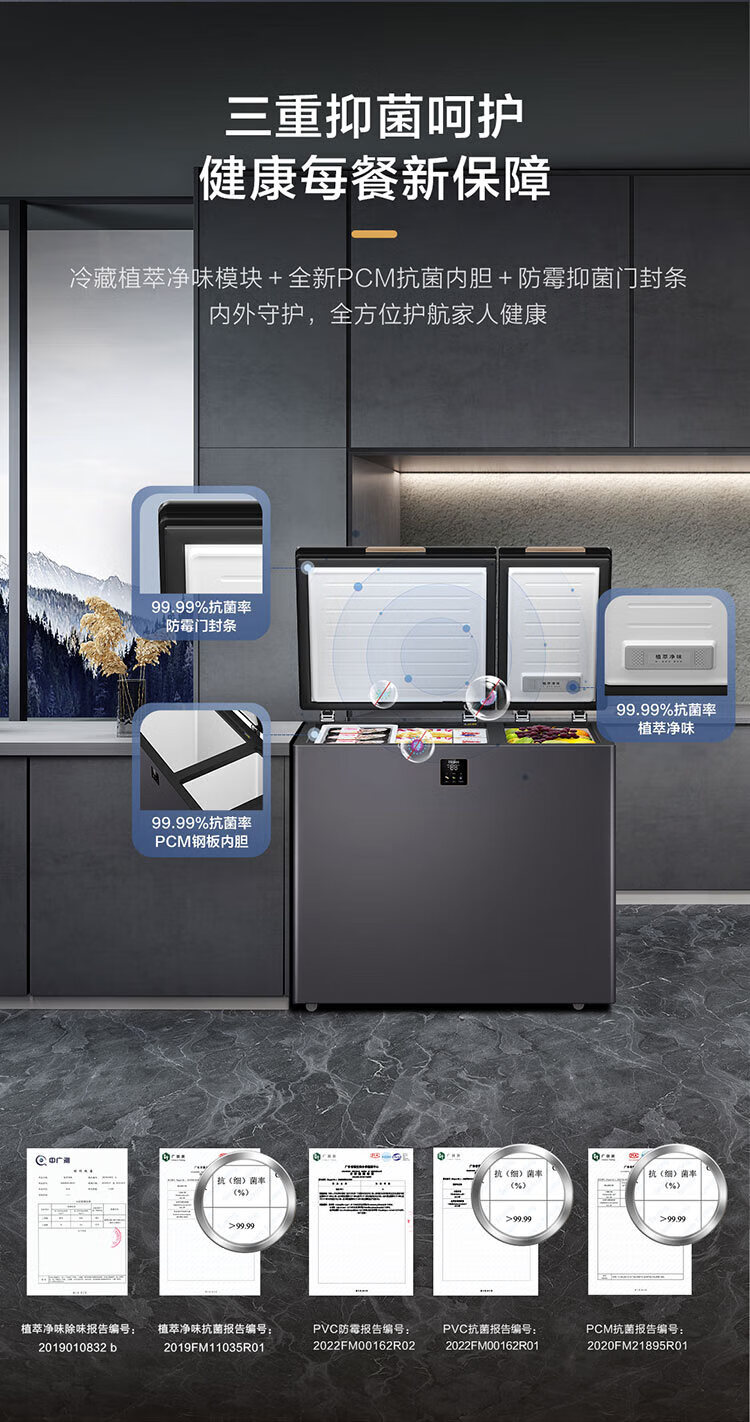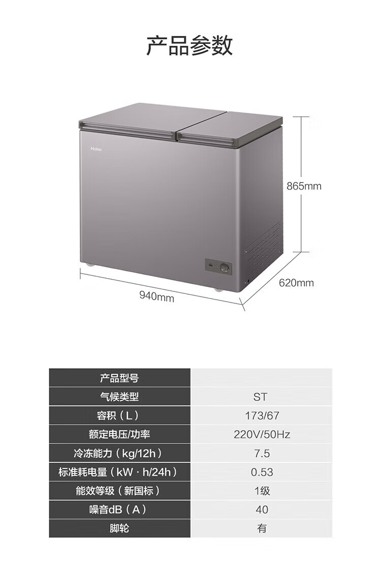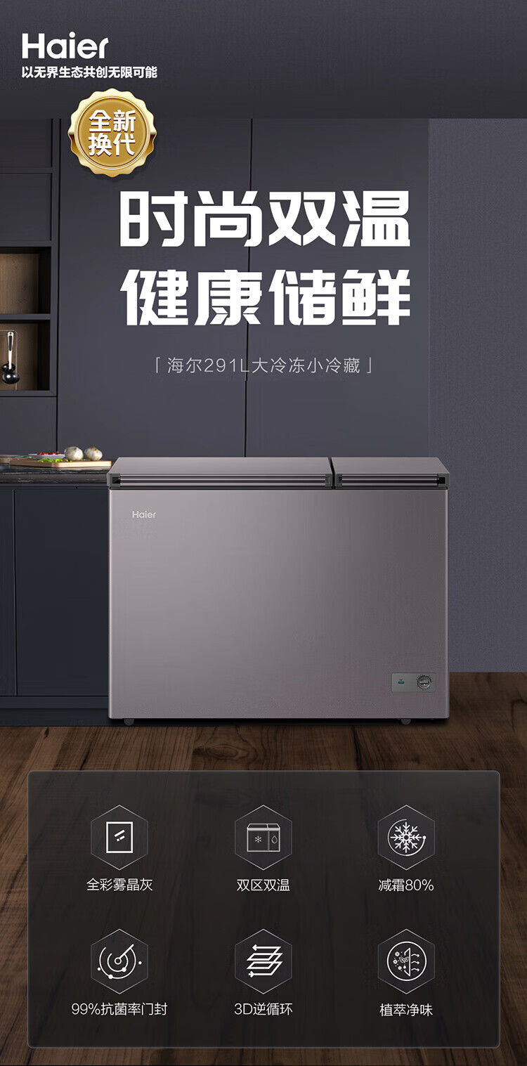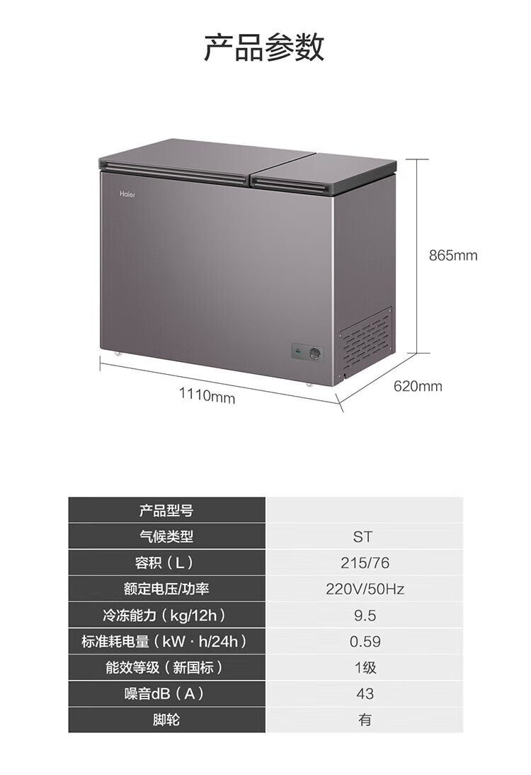 • 商品名称:海尔(Haier)冰柜冷藏冷冻双温保鲜冰箱一级能效节能省电冷柜 双温双室240L-电脑触控-自动除霜 FCD-240GHXPC FCD-240GHXPC/台