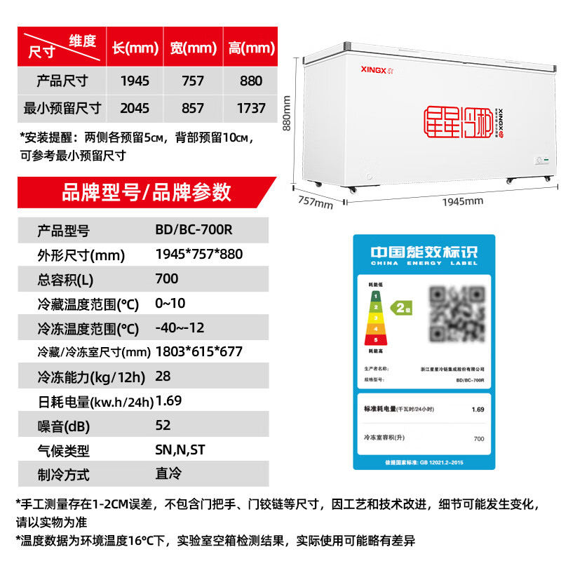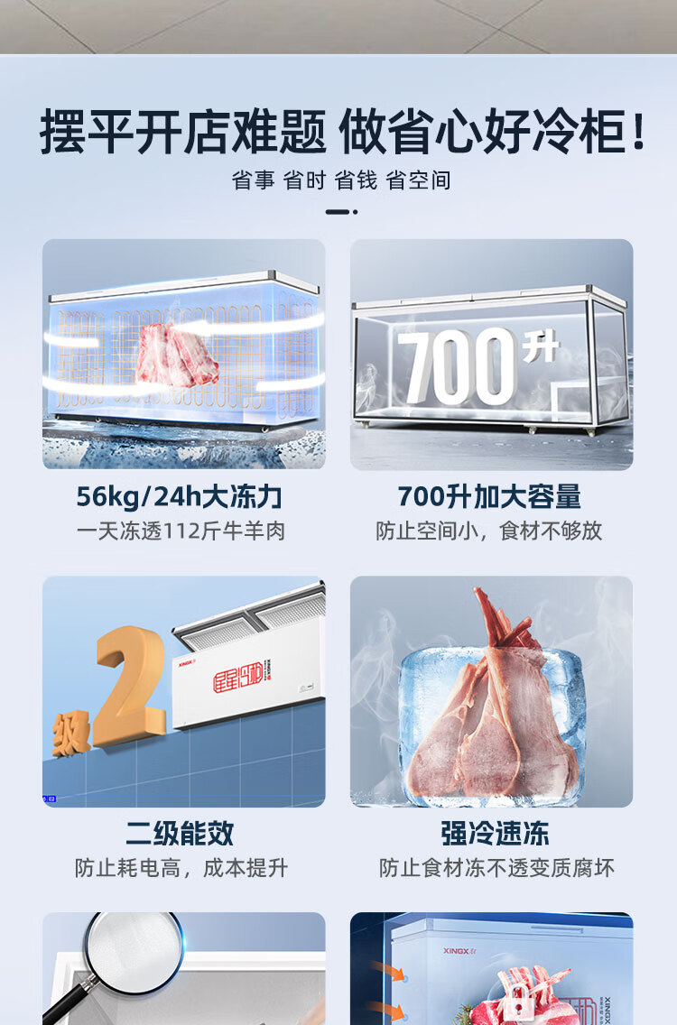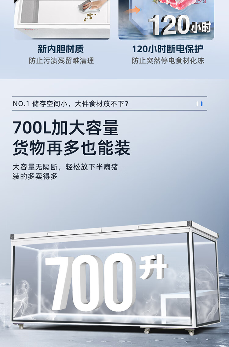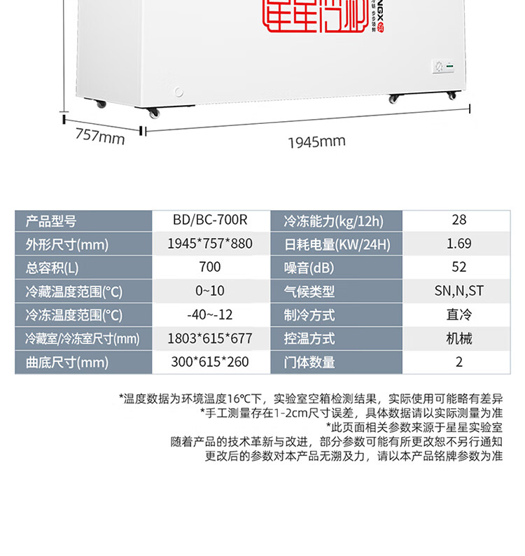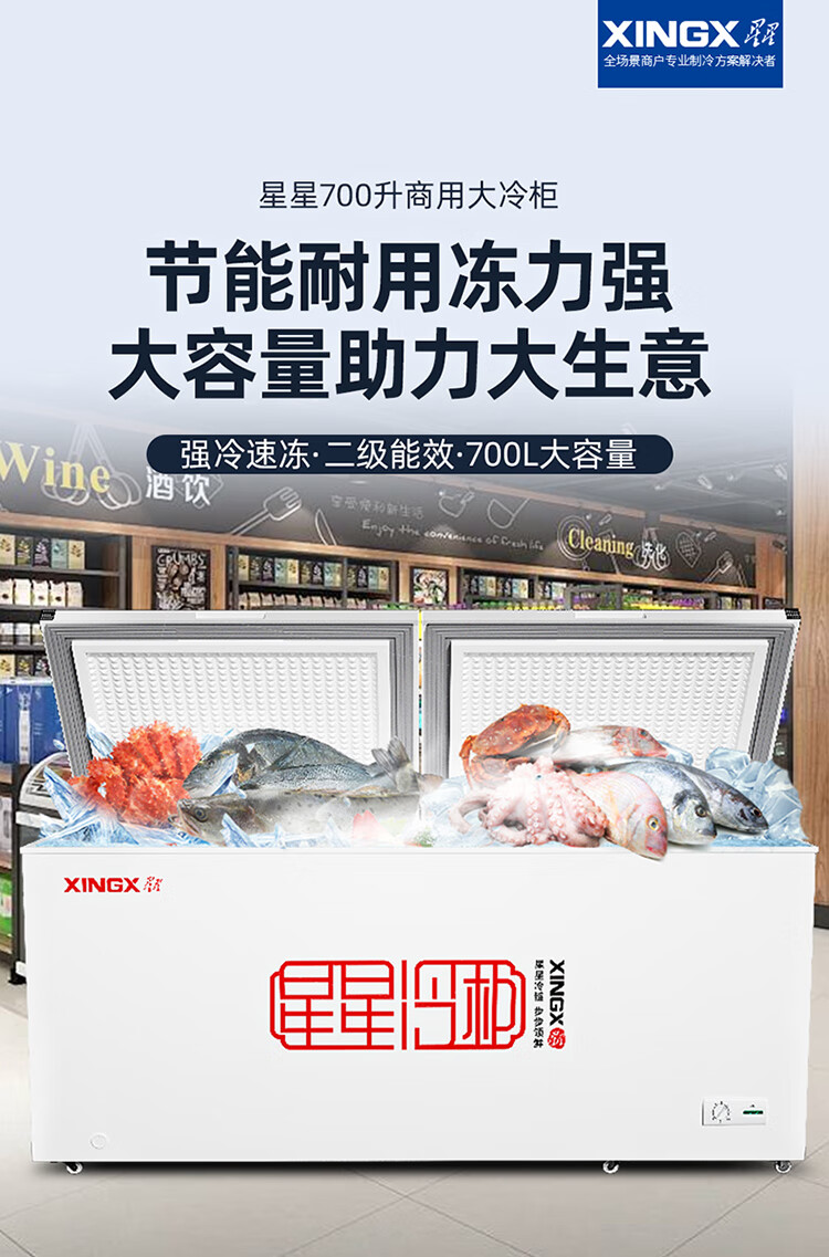 • 商品名称:星星(XINGX)700L商用冰柜微霜冷柜 大容量冰箱冷藏冷冻保鲜节能顶开柜 减霜单箱卧式冷柜 BD/BC-700R BD/BC-700R/台