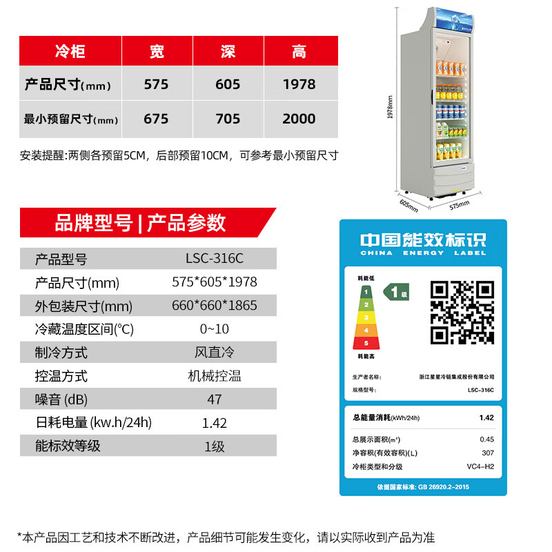 • 商品名称:星星(XINGX)316L立式玻璃门单门展示柜冷柜 银灰色饮料陈列柜 商用冷藏保鲜节能一级能效冰箱LSC-316C LSC-316C/台