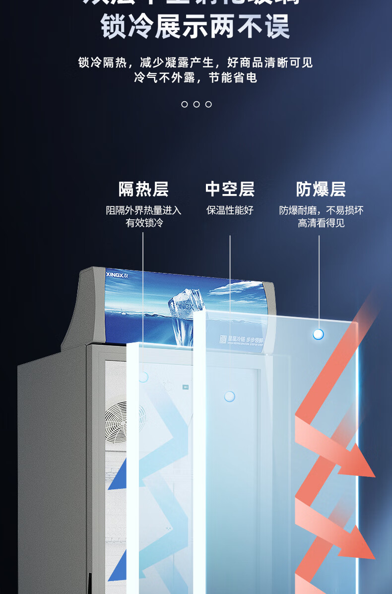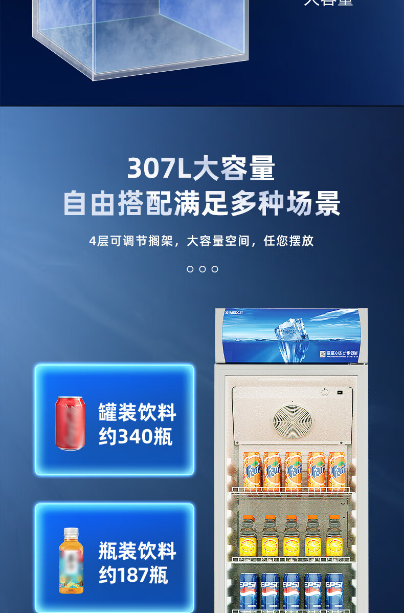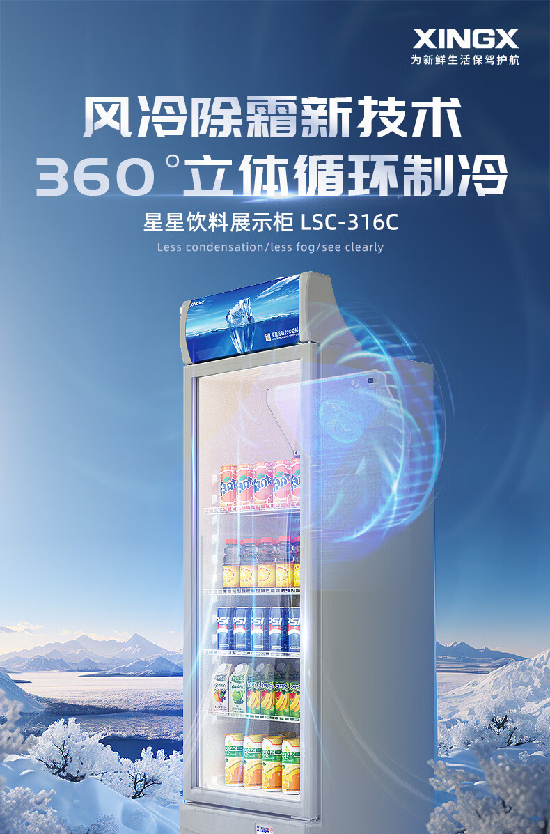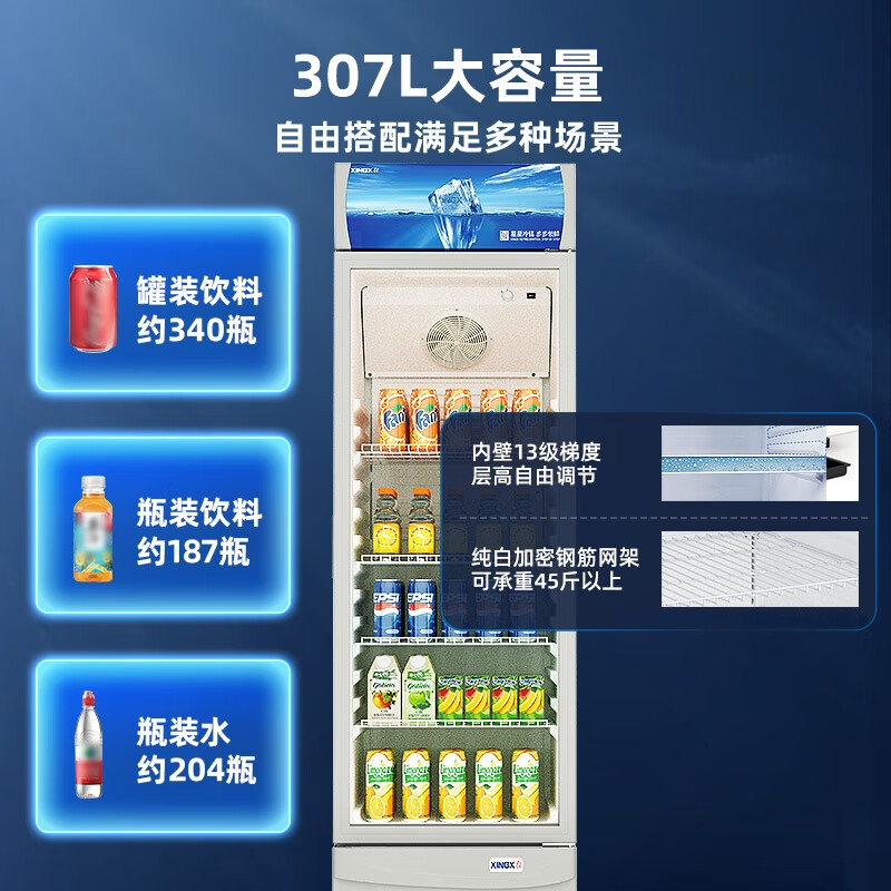 星星(XINGX)316L立式玻璃门单门展示柜冷柜 银灰色饮料陈列柜 商用冷藏保鲜节能一级能效冰箱LSC-316C LSC-316C/台