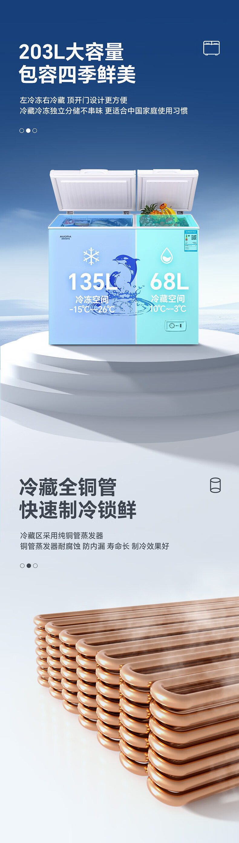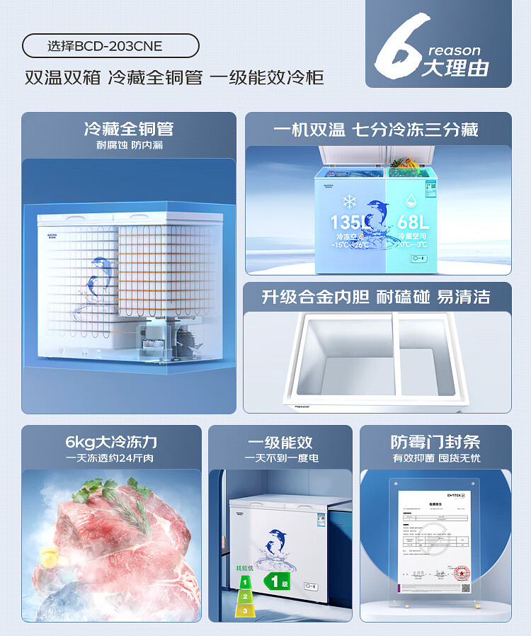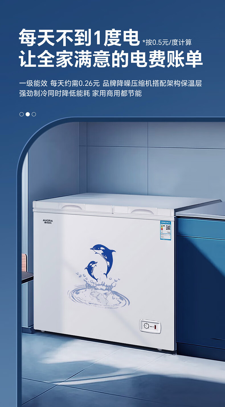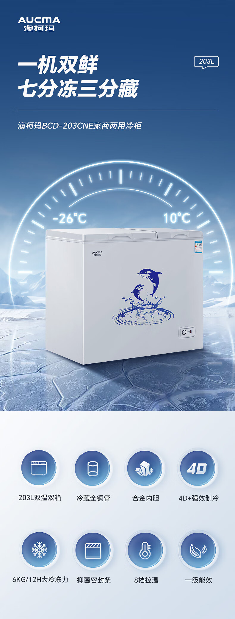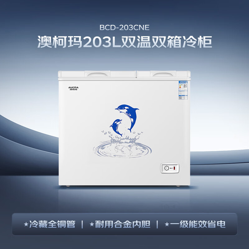 家用电器  > 大家电  > 冷柜  >  澳柯玛/AUCMA  >  澳柯玛(AUCMA)双温系列203升双箱家用冰柜 冷藏冷冻卧式双门钢板冰箱 冷藏全铜管 一级能效 BCD-203CNE BCD-203CNE/台