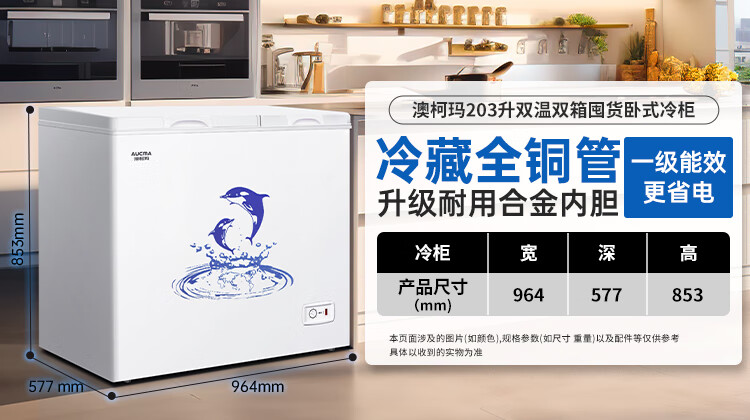 • 商品名称:澳柯玛(AUCMA)双温系列203升双箱家用冰柜 冷藏冷冻卧式双门钢板冰箱 冷藏全铜管 一级能效 BCD-203CNE BCD-203CNE/台