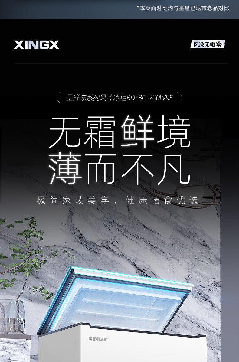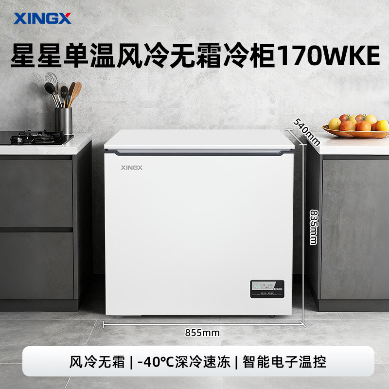 星星(XINGX)170L单温家用小型冰柜大容量风冷无霜保鲜节能一级能效冰箱冷藏冷冻两用冷柜BD/BC-170WKE BD/BC-170WKE/台