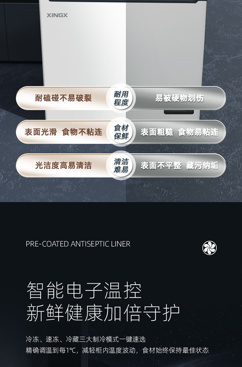 商品名称: 星星(XINGX)170L单温家用小型冰柜大容量风冷无霜保鲜节能一级能效冰箱冷藏冷冻两用冷柜BD/BC-170WKE BD/BC-170WKE/台