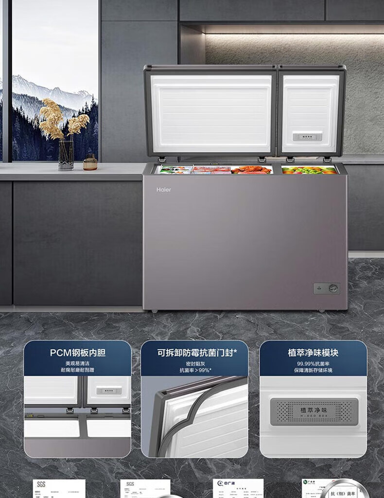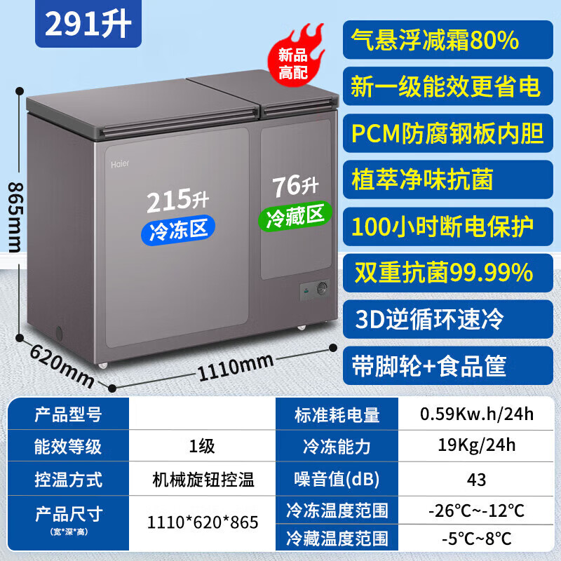 • 商品名称:海尔(Haier)冰柜冷藏冷冻双温保鲜冰箱一级能效节能省电冷柜 双温双室291L-电脑触控-自动除霜 FCD-291GHXPC FCD-291GHXPC/台