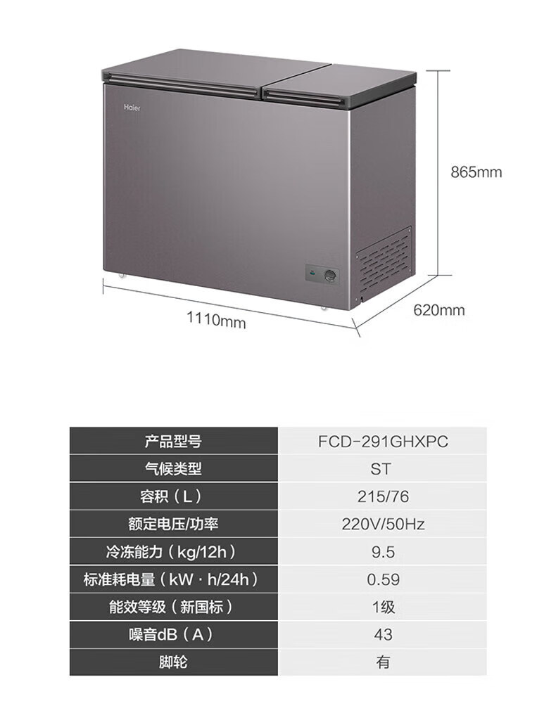 家用电器  > 大家电  > 冷柜  >  海尔/Haier  >  海尔(Haier)冰柜冷藏冷冻双温保鲜冰箱一级能效节能省电冷柜 双温双室291L-电脑触控-自动除霜 FCD-291GHXPC FCD-291GHXPC/台