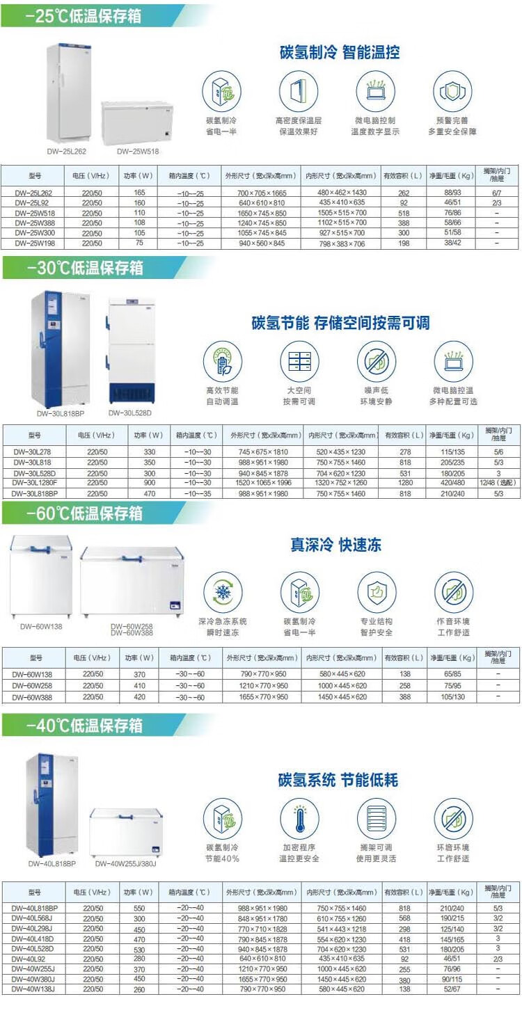 • 商品名称:海尔生物医疗haier实验室医用低温保存箱零下25 30 40 60度负 -30度冷冻冰箱 DW-30L818BP(-35度) DW-30L818BP/台