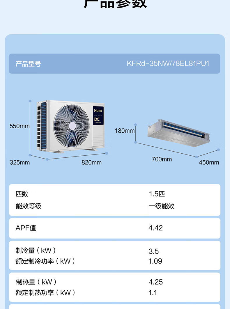 • 商品名称:海尔中央空调 2匹风管机一拖一云舒领航版家用除甲醛卧室 纯铜管 KFRd-50NW/78EL81PU1 京配 KFRd-50NW/78EL81PU1/套
