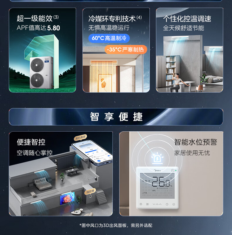 • 商品名称:美的(Midea)中央空调一拖四多联机星光6匹【三室一厅】新一级能效 适用110-130㎡ MDS-140W-D02-XG MDS-140W-D02-XG/套