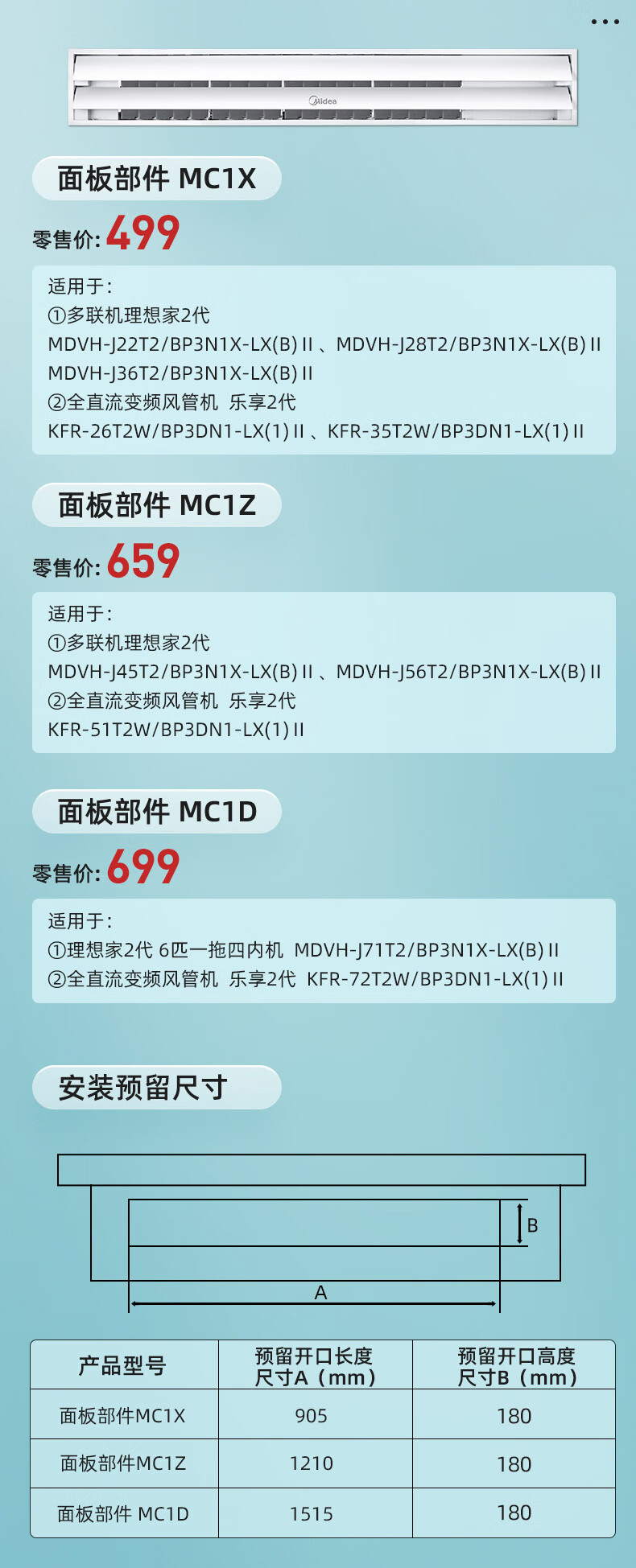 • 商品名称:美的家用中央空调配件面板部件MC1D 原装3d面板送风口 MC1D/套