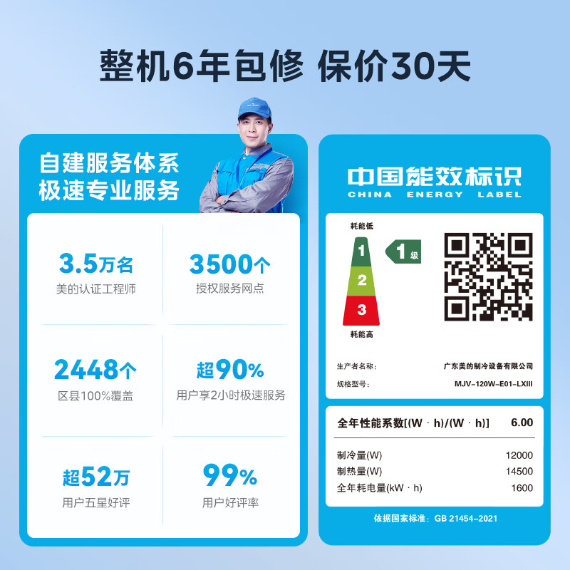 • 商品名称:美的中央空调一拖三多联机5匹理想家三代 省电两室一厅80~110㎡ MJV-120W-E01-LXⅢ/套