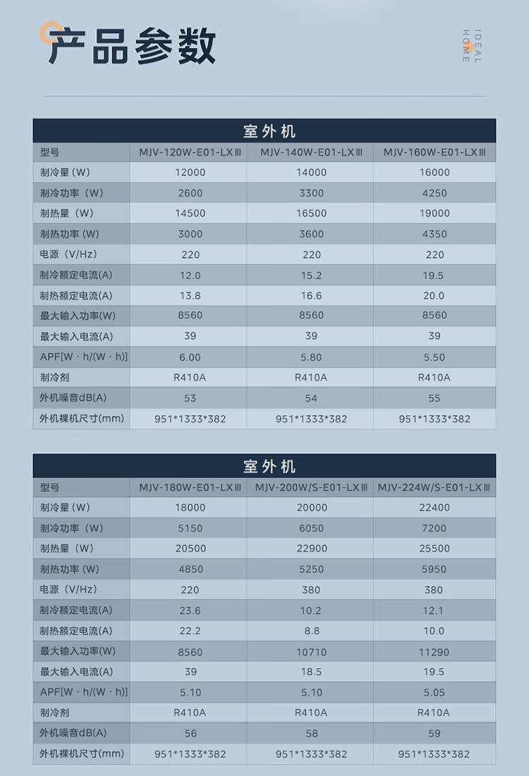 商品名称: 美的中央空调一拖三多联机5匹理想家三代 省电两室一厅80~110㎡ MJV-120W-E01-LXⅢ/套