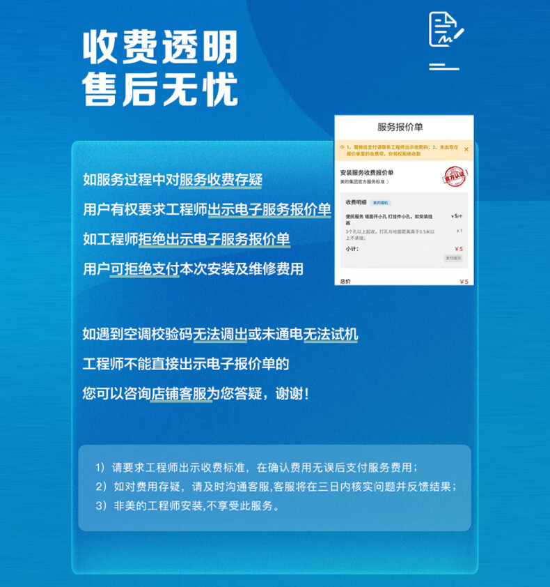 包装清单: 室外机× 1、室内机× 1、明书 × 1、保修卡 × 1、遥控器× 1