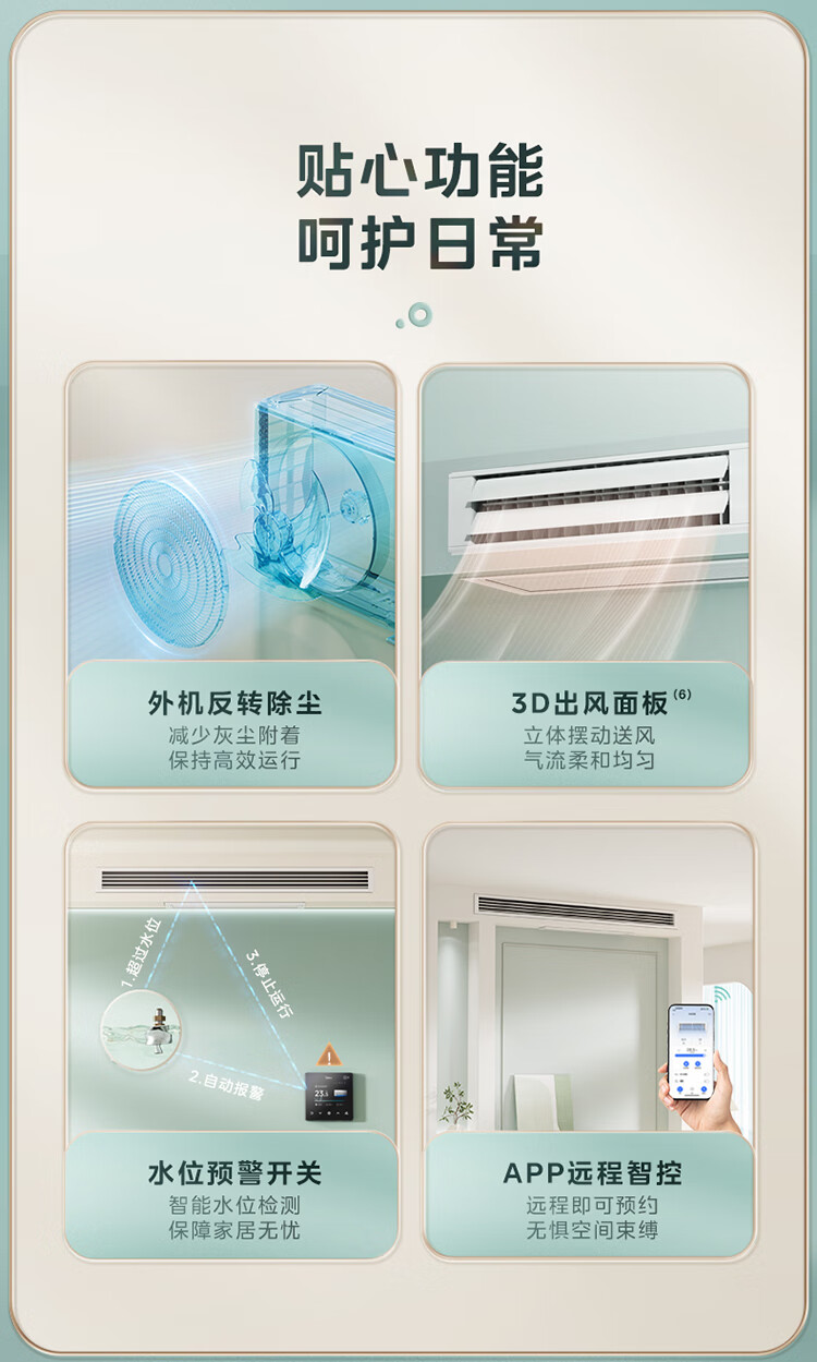 包装清单: 室外机× 1、室内机× 1、说明书 × 1、保修卡 × 1、线控器× 1