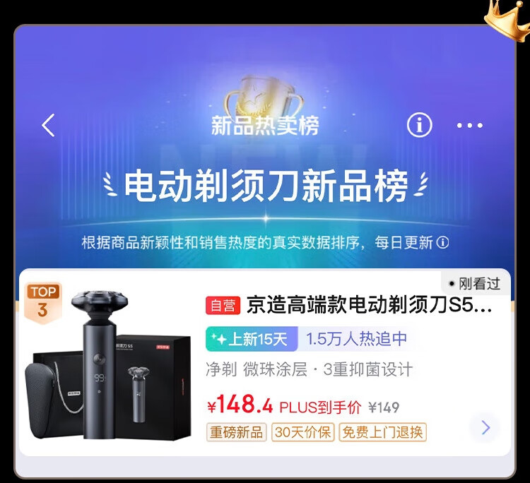 家用电器  > 个护健康  > 剃须刀  >  京东京造  >  京东京造电动剃须刀礼盒款S5 电动剃须刀旋转式男士刮胡须刀刮胡刀双环弧面刀网浮动贴面水洗男士 S5/个