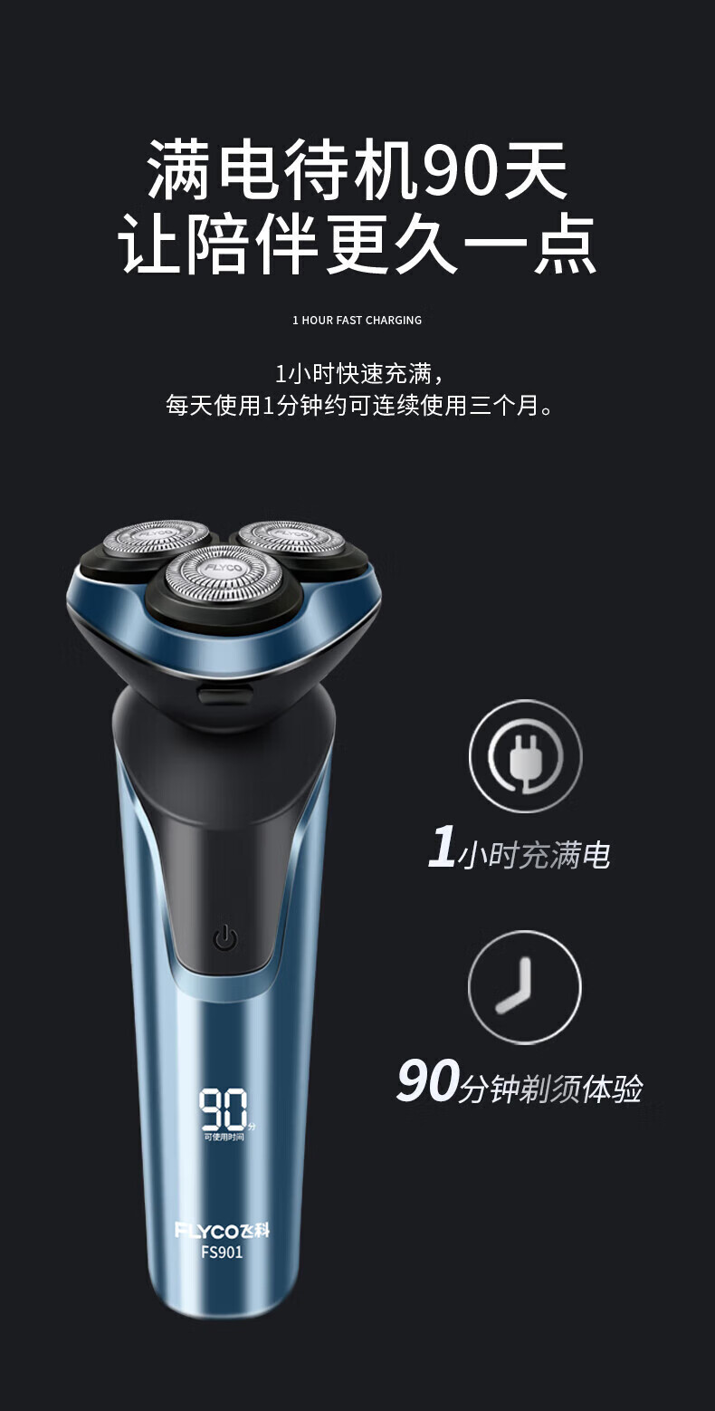 家用电器  > 个护健康  > 剃须刀  >  飞科/FLYCO  >  飞科(FLYCO)电动剃须刀三刀头电动刮胡刀剃胡刀男士便携电须刀刮胡子全身水洗FS901 FS373/个