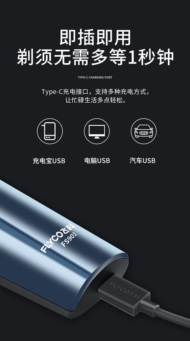 商品名称: 飞科(FLYCO)电动剃须刀三刀头电动刮胡刀剃胡刀男士便携电须刀刮胡子全身水洗FS901 FS373/个