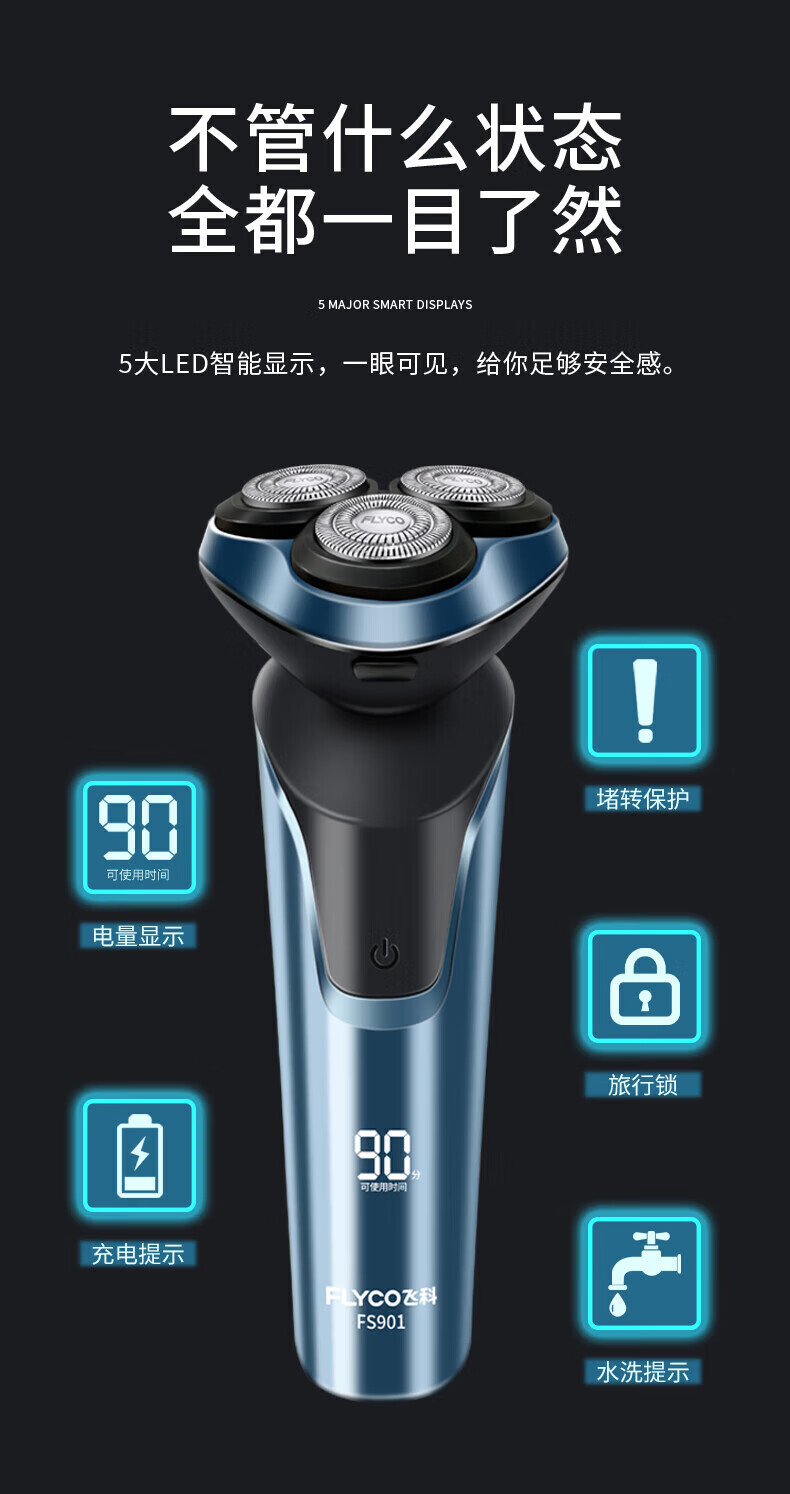• 商品名称:飞科(FLYCO)电动剃须刀三刀头电动刮胡刀剃胡刀男士便携电须刀刮胡子全身水洗FS901 FS373/个