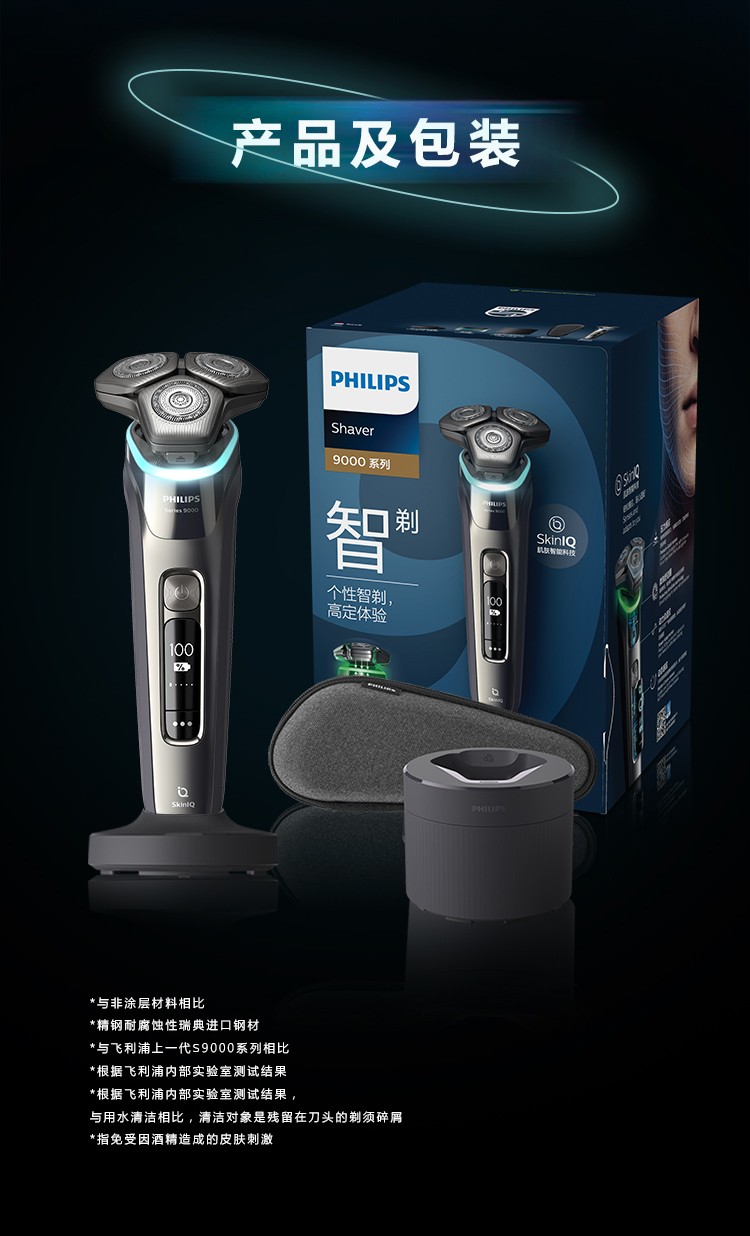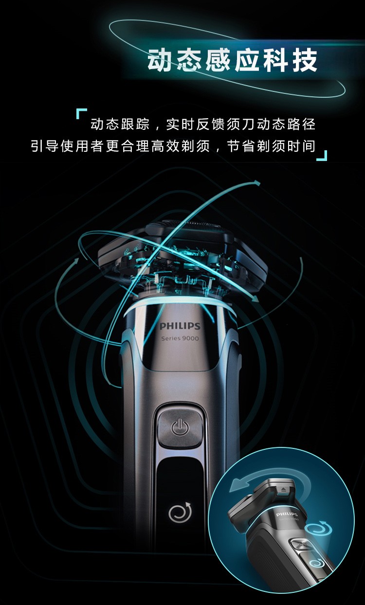 商品名称: 飞利浦(PHILIPS)电动刮胡刀肌能感应科技AI智能发光 痘痘肌专属 全新9系动态感应S9936/55 S9936/55/台