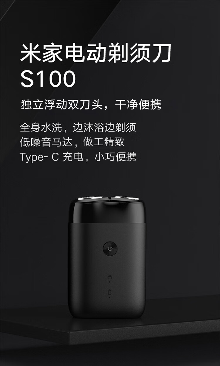 • 商品名称:米家 米家电动剃须刀刮胡刀旋转双刀头全身水洗90分钟续航Type-C快充 S100 送男女朋友生日节日礼物 S100/个