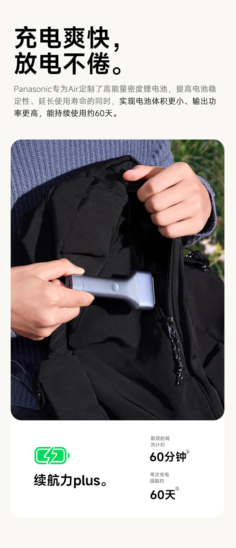 • 商品名称:松下(Panasonic)Air电动剃须刀便携款进口磁悬浮剃须刀纤薄往复式电动刮胡刀Type-c新年礼物送男生TM20灰生日礼物 ES-TM20/台
