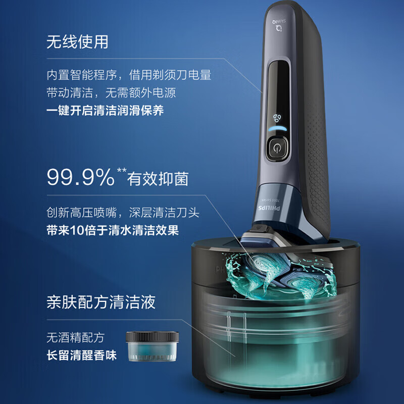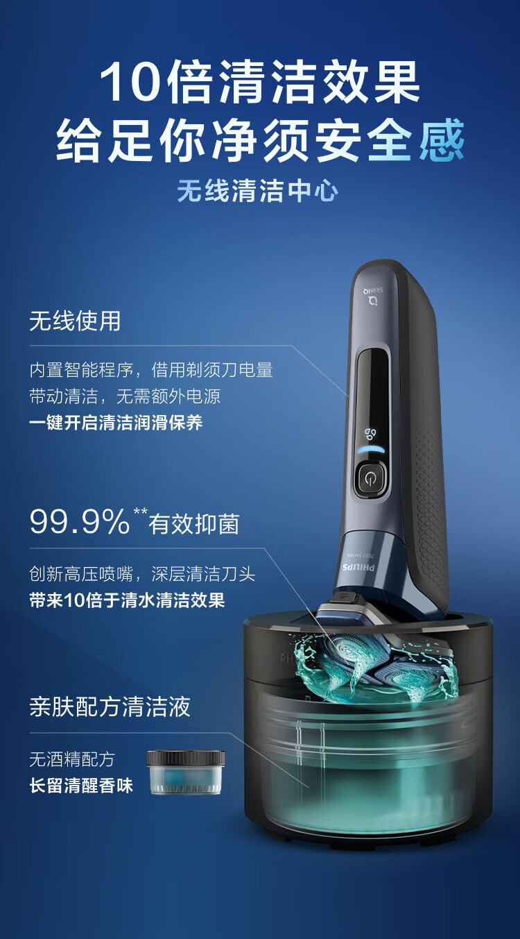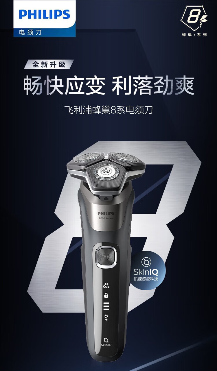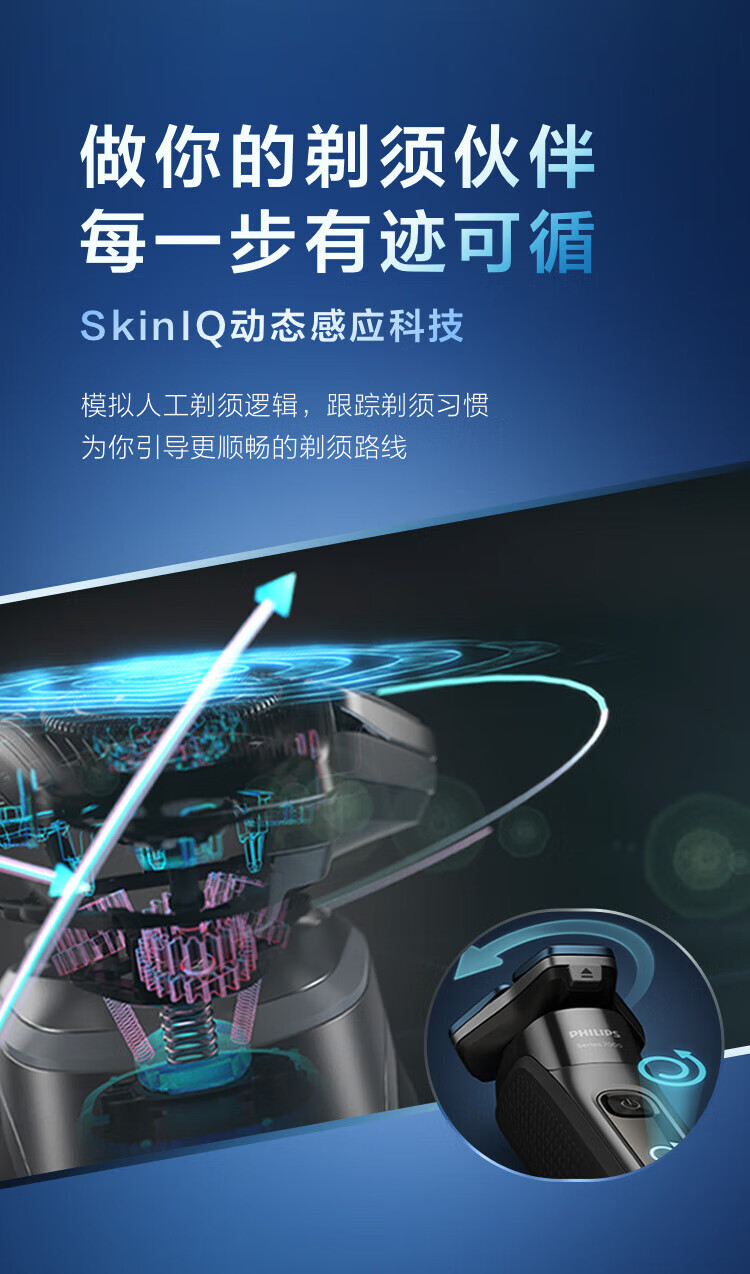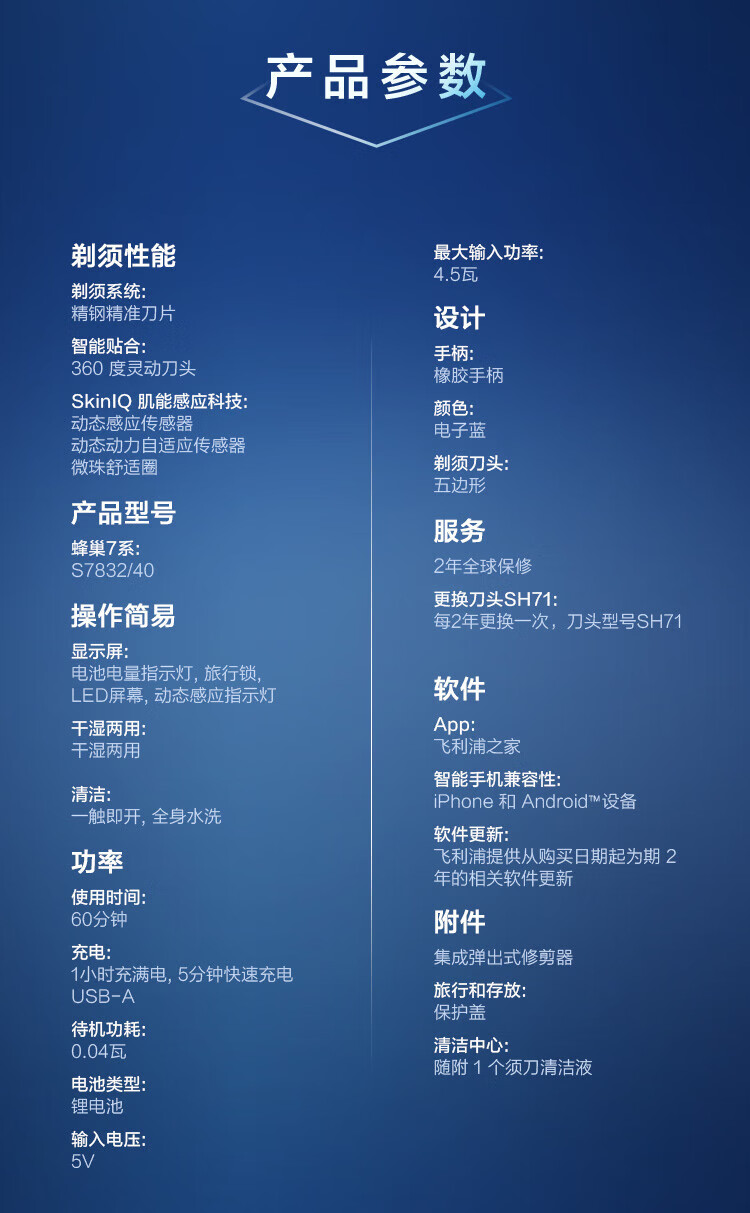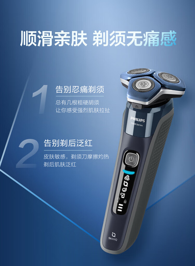 商品名称: 飞利浦(PHILIPS)电动剃须刀SkinIQ蜂巢7系蓝蜂巢肌能感应零感刮胡刀S7832/40 支持一件代发 S7832/40/台