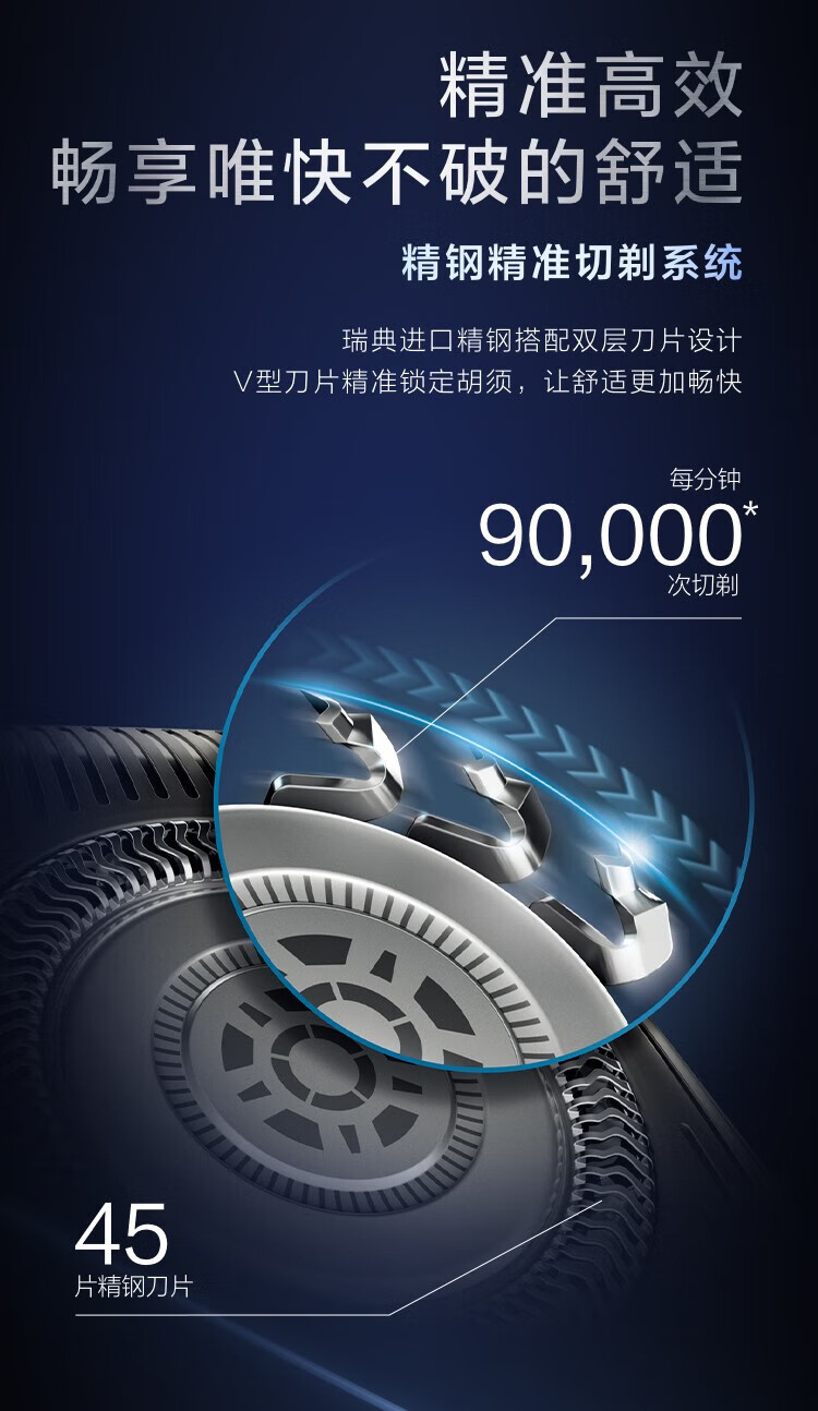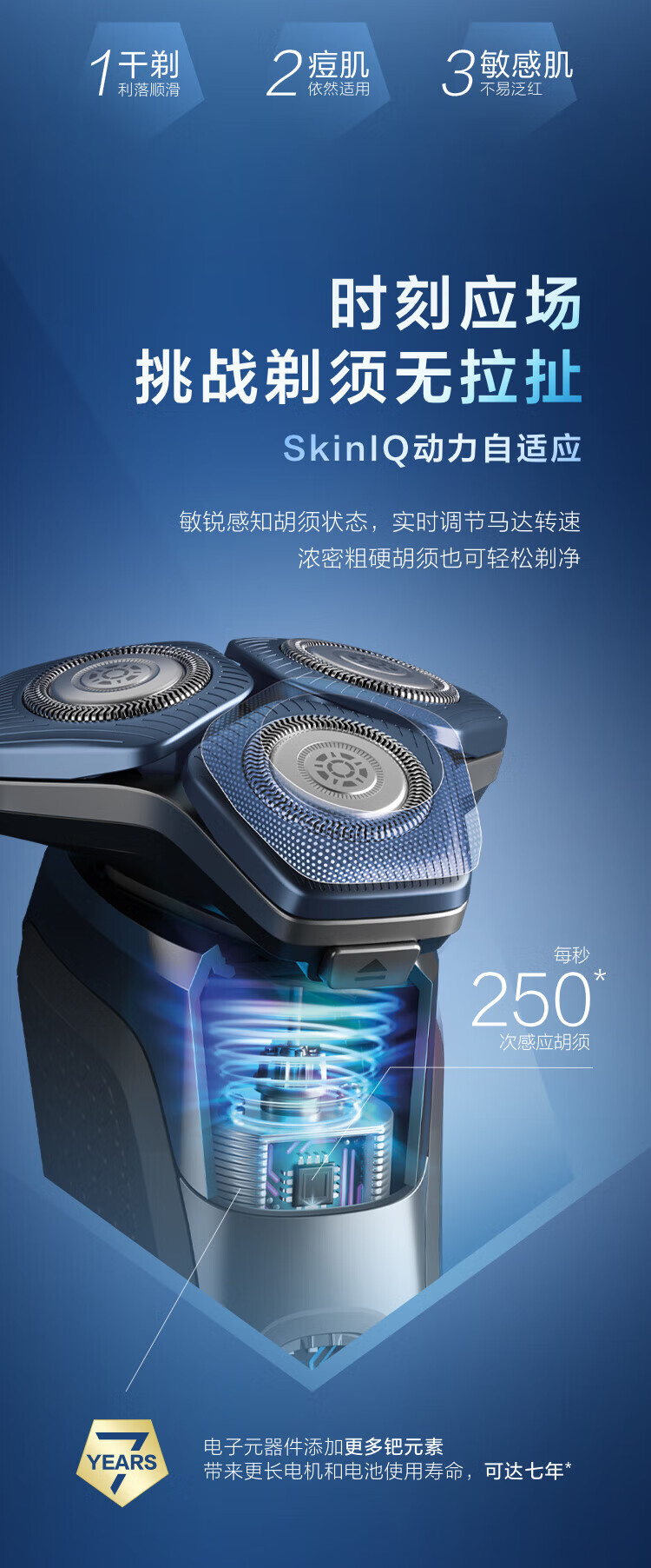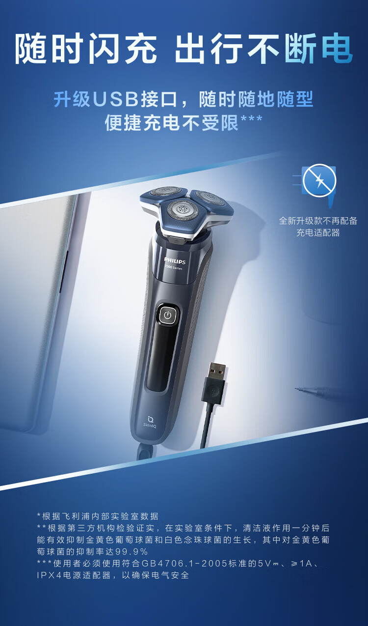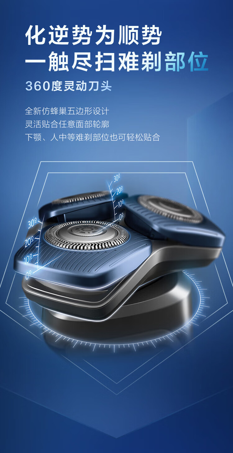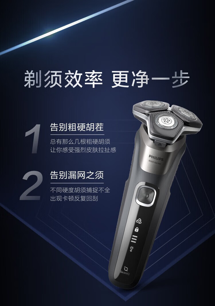 商品名称: 飞利浦(PHILIPS)电动剃须刀SkinIQ蜂巢7系蓝蜂巢肌能感应零感刮胡刀S7832/40 支持一件代发 S7832/40/台