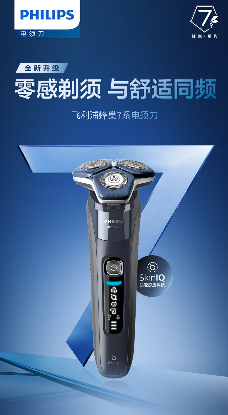 家用电器  > 个护健康  > 剃须刀  >  飞利浦/PHILIPS  >  飞利浦(PHILIPS)电动剃须刀SkinIQ蜂巢7系蓝蜂巢肌能感应零感刮胡刀S7832/40 支持一件代发 S7832/40/台
